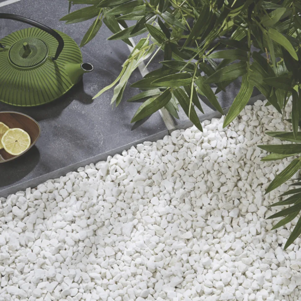 Description du gravier marbre Carrare 9 à 12 mmCouleur des gravillons : Les graviers sont blancs lumineux avec de légères nervures grisées.Ce gravier en marbre est robuste mais sensible à la mousse. Il est important de l’entretenir régulièrement en dégageant les feuilles mortes et autres dérbis du jardin par soufflerie. Eviter de l’étaler en zone trop humide, ou toujours à l’ombre.Vous pourrez garder le blanc de votre gravier en pulvérisant une solution à base d’eau, à laquelle vous aurez ajouté du bicarbonate de soudeForme des gravillons : le gravier est concassé, ce qui signifie que ses côtés ont une forme irrégulière et plutôt anguleuse. Cette caractéristique leur donne un aspect brut et contemporainDimensions du big bag : 110 x 110 x 75 cm (L x l x H)Usages du gravillon marbre blanc concassé 9/12Gravier Décoratif pour massifs, parterres et plate bandes au jardin (après la pose d’un géotextile pour limiter la repousse des mauvaises herbes)Extérieur ou intérieurZone de parking : compatible avec un stabilisateur de gravier (appelé aussi nid d’abeille)Allées carrossable d’un blanc immaculéCouverture de sols pour jardins japonaisPaillages pour massifs : met en valeur la verdure et les fleurs coloréesDonnées de calcul de besoin selon la surface de votre projet