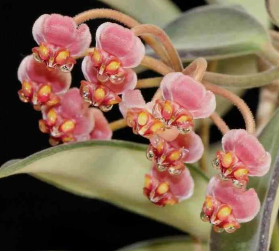 Plante grimpante au feuillage le plus souvent charnu, les Hoya fleurissent en donnant des fleurs en ombelles pédonculées. Les cinq pétales cireux et charnus, souvent brillants rappellent la porcelaine ou la cire. Ces fleurs ressemblent à de véritables bijoux ! Les hoyas sont des épiphytes, comme les orchidées. Une fois qu’elles commencent à fleurir, elles le font presque en continu.