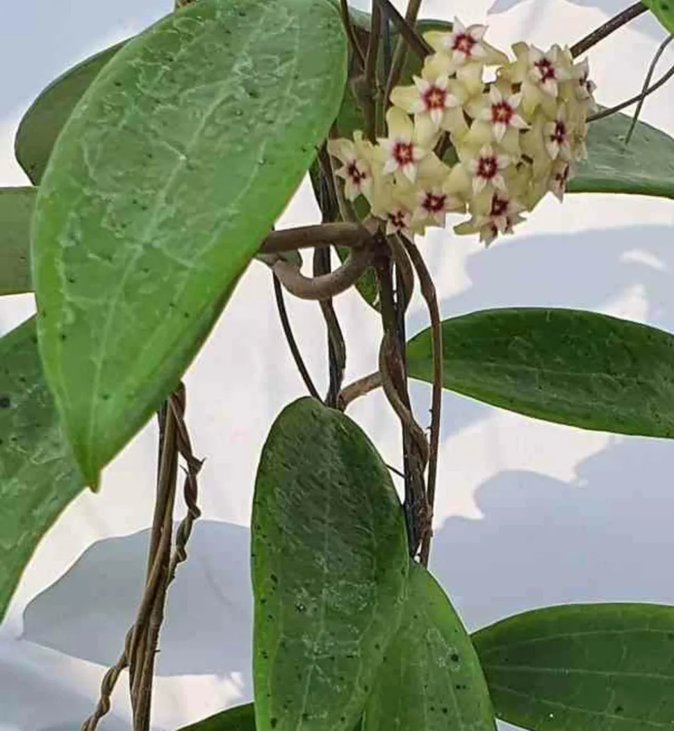 Plante grimpante au feuillage le plus souvent charnu, les Hoya fleurissent en donnant des fleurs en ombelles pédonculées. Les cinq pétales cireux et charnus, souvent brillants rappellent la porcelaine ou la cire. Ces fleurs ressemblent à de véritables bijoux ! Les hoyas sont des épiphytes, comme les orchidées. Une fois qu’elles commencent à fleurir, elles le font presque en continu.