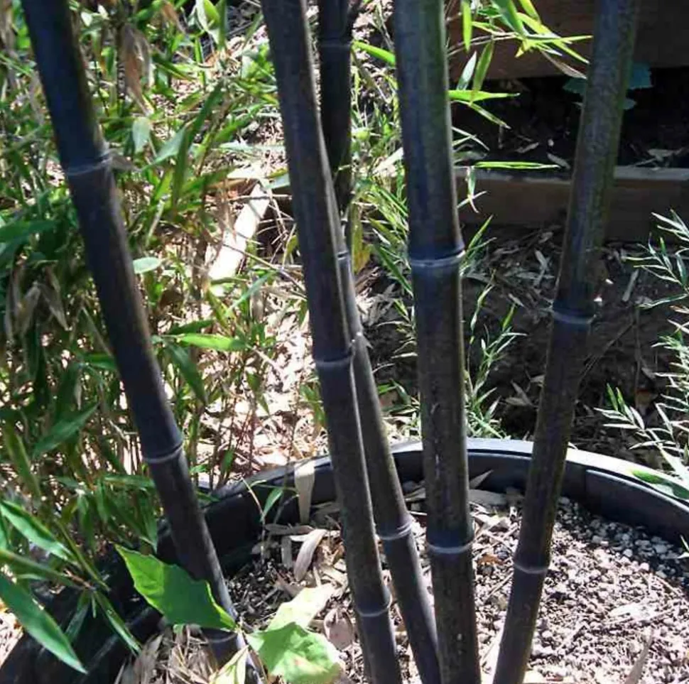 Phyllostachys nigra est un magnifique bambou situé à la taille moyenne (4 à 7m) . Il faut noter que ces cannes seront d’abord vertes pour ensuite devenir entre noires 1 et 2 ans.Ces pousses sortent vert olive. Il est moins traçant que les autres phyllostachys, Son feuillage vert foncé contraste bien avec ces cannes noires.