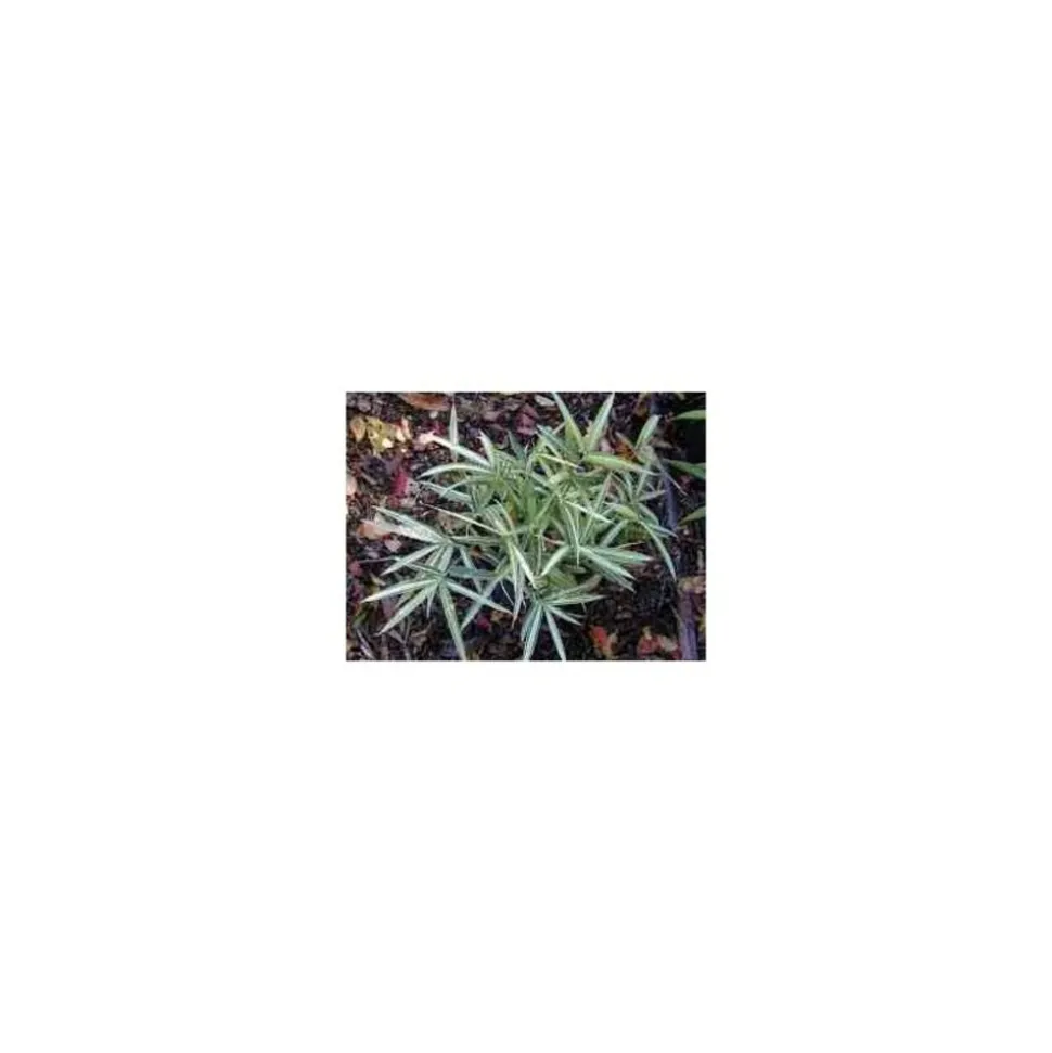 Magnifique petit bambou rustique possède un feuillage panaché vert sombre et jaune coquille d’?uf. Longues feuilles pouvant atteindre 20 cm. Port en buisson.