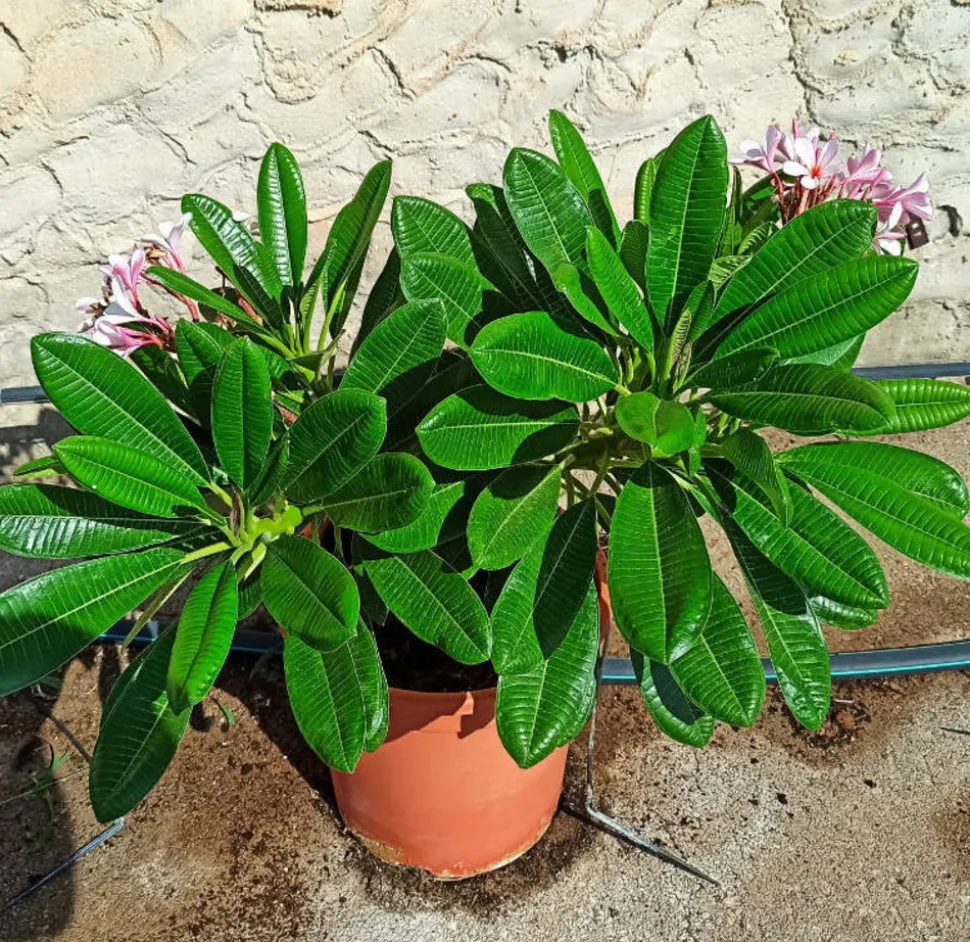 Le frangipanier (Plumeria) est un bel arbuste à feuilles caduc de forme lancéolée et gaufrée d’un beau vert fort devenant rougeâtre en fin de saison. Les feuilles sont simples et entières et groupées aux extrémités des rameaux. Il est bien connu pour ses jolies fleurs en bouquet et en forme de spirale. Le panel de couleurs disponibles est très vaste ! Ces fleurs sont une des plus parfumées de toutes les fleurs tropicales. La floraison printanière dure environ 6 mois. Cette plante est importée de nos pépinières thaïlandaises. Elle vous sera livrée sans feuilles selon la réglementation en vigueur : Elle vous refera de belles feuilles prochainement !