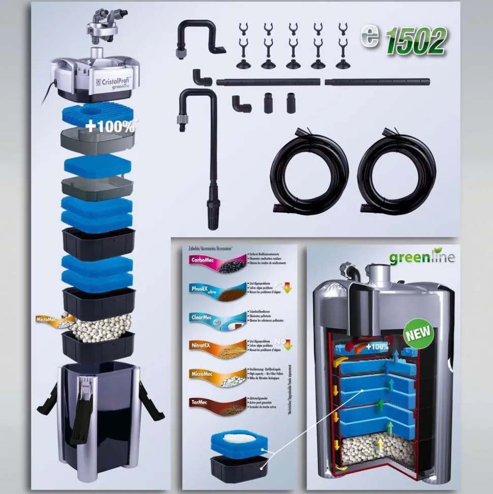 Ce filtre extérieur convient à un aquarium de 200 à 700 litres. Il est entièrement équipé et prêt à utiliser.