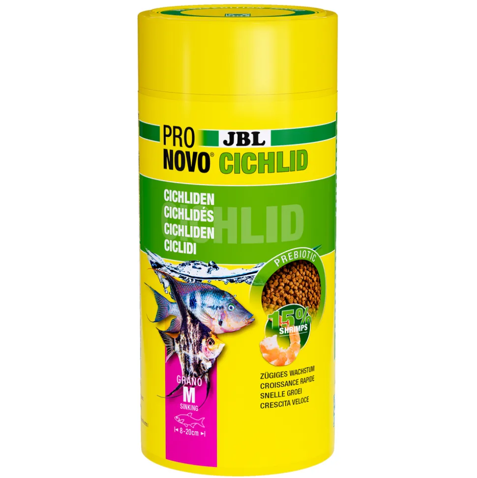 Destiné aux poissons de la famille des cichlidés et aux scalaires, cet aliment de base est enrichi en prébiotiques. En nourrissant les bactéries intestinales positives présentes dans l’organisme de vos poissons, les fibres alimentaires stimulent la digestion de vos protégés. Grâce à sa formule appétissante, cet aliment est très apprécié des petits cichlidés, même les plus difficiles. Ces granulés peuvent être administrés une à deux fois par jour, selon les habitudes alimentaires de vos poissons. Rangez la boîte dans un endroit sec après ouverture.