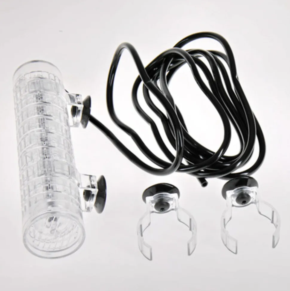 Réacteur à CO2 haute diffusion, avec 10 modules + module socle avec raccord de tuyau + bouchon de récupération en haut, 4 pinces avec ventouses, tuyau spécial CO2 de 2 m, hauteur 19 cm.