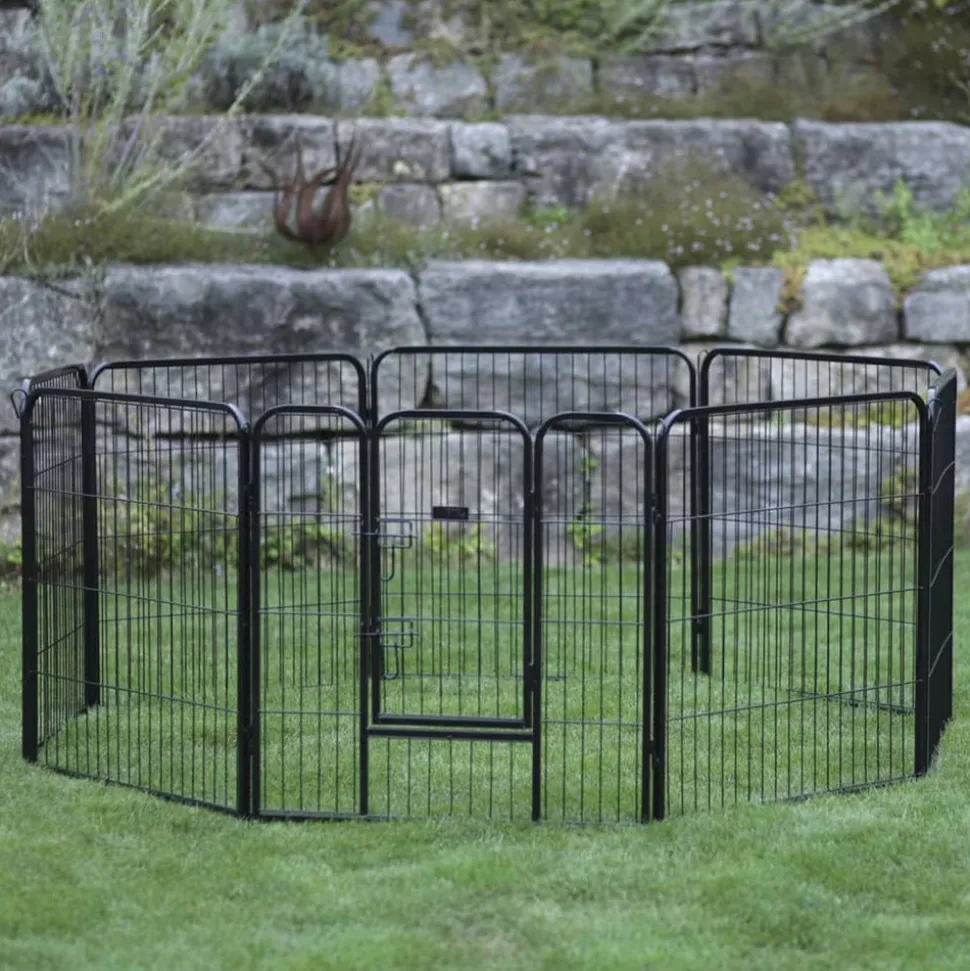 L’enclos noir d’extérieur avec porte pour animaux de compagnie de la marque Kerbl offrira à vos petits animaux un environnement confortable dans lequel ils pourront profiter de l’air frais et du soleil. Grâce à sa conception robuste, vous n’avez pas à vous soucier de leur fuite. À l’intérieur de ce parc pour animaux de compagnie, vos petits animaux de compagnie peuvent grignoter des légumes frais et courir partout. Il est facile à assembler avec les piquets de sol fournis, et peut être étendu avec des panneaux supplémentaires. Remarque: vérifiez la distance entre les barres pour chaque animal avant de l’utiliser.