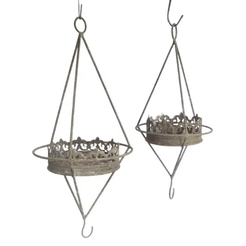 Magnifique ensemble de 2 mangeoires à oiseaux, parfaites pour y déposer des graines. Grâce à son losange en fer, la suspension est très solide et stable. Elles se suspendent facilement avec leurs crochets tout en gardant un bon équilibre. Sa couleur fer gris patiné apportera du charme à votre jardin.