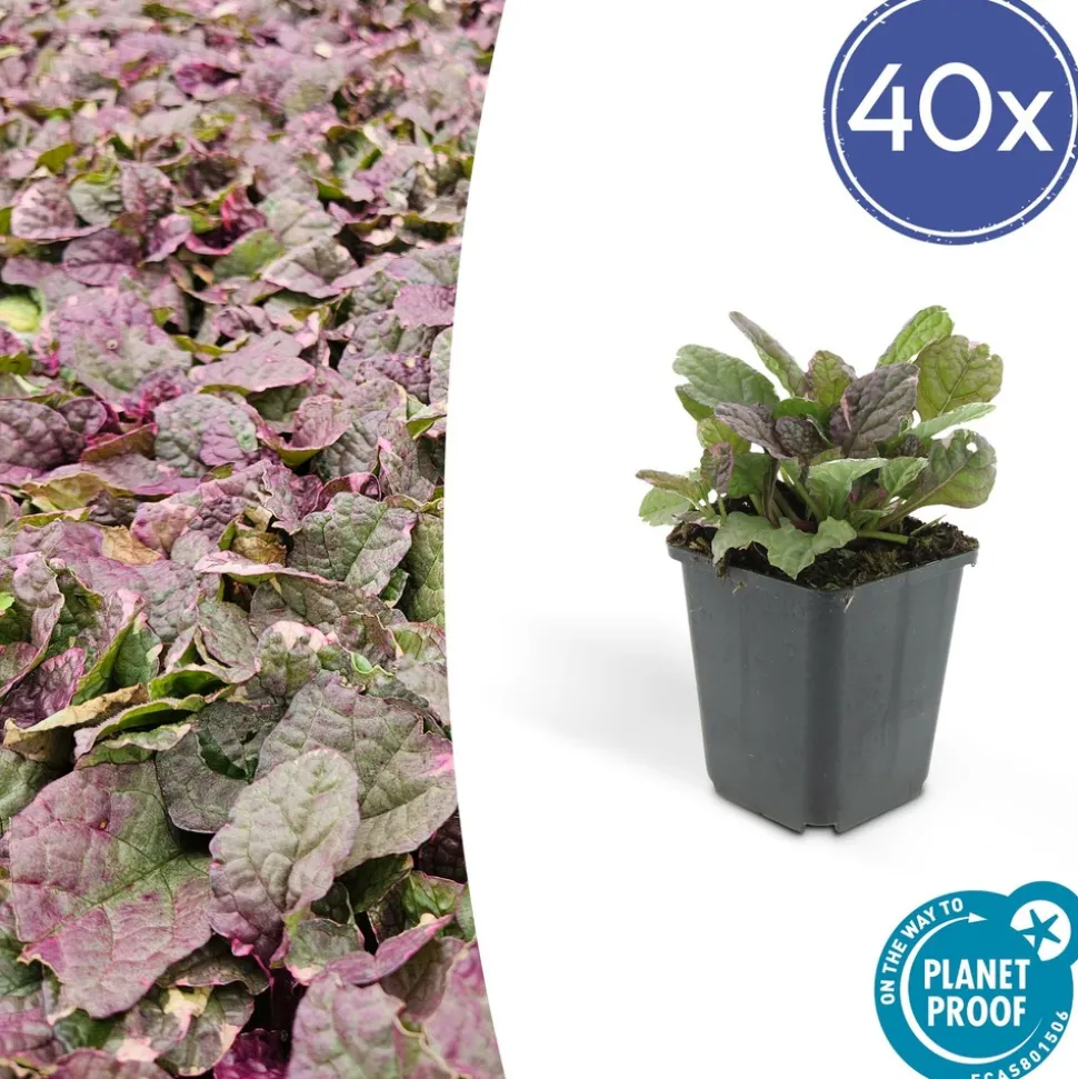 Les Bugle rampant ‘Burgundy Glow’ sont vendues par lot de 40 pots qui mesurent 9 cm et 10-25 cm de hauteur. Ajuga reptans ‘Burgundy Glow’ : Un couvre-sol spectaculaire au feuillage lumineux et décoratif———————————————————————————————-L’Ajuga reptans ‘Burgundy Glow’ est une plante vivace rampante très prisée pour son feuillage panaché magnifique et sa floraison printanière bleu violacé. Robuste et facile à cultiver, elle apporte rapidement une touche colorée et décorative aux jardins et massifs ombragés.Origines de l’Ajuga reptans ‘Burgundy Glow’Originaire d’Europe, l’Ajuga reptans se rencontre naturellement dans les bois clairs, les prairies humides et les zones semi-ombragées où elle forme un beau tapis végétal. La variété ‘Burgundy Glow’ est une sélection horticole qui s’est distinguée par son superbe feuillage panaché de crème, vert et rose violacé offrant un contraste remarquable.Description et caractéristiques visuelles de l’Ajuga ‘Burgundy Glow’L’Ajuga reptans ‘Burgundy Glow’ est une plante couvre-sol compacte, atteignant environ 15 cm de haut pour une largeur pouvant aller jusqu’à 40 cm. Son magnifique feuillage nervuré mêle des nuances de pourpre violacé, de rose, de crème et de vert, offrant ainsi un spectaculaire contraste dans les massifs ou le long des bordures. La plante produit au printemps des hampes florales dressées aux fleurs bleu-mauve très décoratives, attirant les pollinisateurs et embellissant votre jardin pendant plusieurs semaines.Sublimez facilement votre jardin en adoptant l’Ajuga reptans ‘Burgundy Glow’, un couvre-sol aux nuances captivantes !