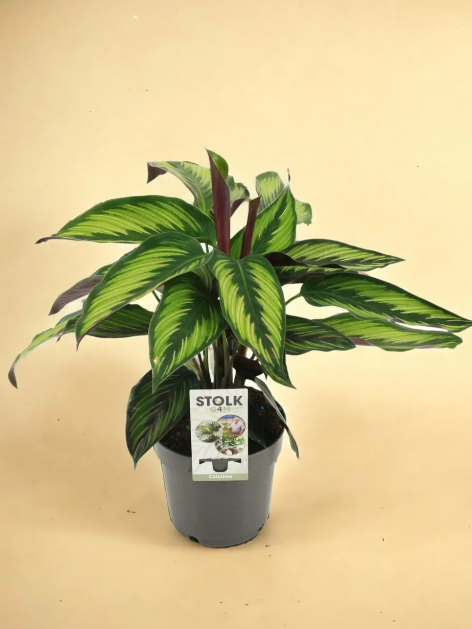 Calathea Majestica : Une symphonie de couleurs pour un intérieur captivantLa Calathea Majestica, connue pour ses feuilles spectaculairement ornées, est une variété de Calathea qui attire inévitablement le regard. Avec ses larges feuilles vert foncé et les marquages vibrants blancs et roses, cette plante ne manque pas de charme et est souvent le centre d’attention dans toute collection de plantes d’intérieur.Croissance et entretien :Cette plante tropicale préfère les environnements chauds et humides, loin des courants d’air directs. Elle prospère sous une lumière indirecte et doit être arrosée régulièrement pour maintenir le sol uniformément humide, mais sans excès d’eau. Un bon drainage est crucial pour éviter les problèmes racinaires. La Calathea Majestica bénéficie également d’une bonne humidité ambiante, ce qui peut être atteint avec un humidificateur ou en plaçant la plante sur un plateau de galets mouillés.Caractéristiques esthétiques :La beauté de la Calathea Majestica réside dans ses feuilles exquises, qui semblent presque peintes à la main. Le contraste des couleurs et les motifs précis offrent un spectacle visuel qui peut dynamiser n’importe quel espace. C’est une plante idéale pour ajouter une touche de sophistication et de couleur dans des espaces tels que les salons, les bureaux ou les chambres à coucher.Bienfaits pour la santé :En plus de son attrait esthétique, la Calathea Majestica aide à purifier l’air. Elle est connue pour absorber les toxines présentes dans l’air, ce qui contribue à créer un environnement intérieur plus sain.Utilisation et placement :Cette plante est parfaitement adaptée pour être placée dans des pièces où les gens passent beaucoup de temps, car elle peut aider à améliorer la qualité de l’air tout en embellissant l’espace. Évitez les endroits trop lumineux, car une lumière directe peut décolorer ses feuilles.Un choix idéal pour les amateurs de beauté naturelle :Avec son entretien spécifique mais gérable, la Calathea Majestica est idéale pour les jardiniers qui aiment les défis et souhaitent ajouter un élément unique à leur collection de plantes.La Calathea Majestica est plus qu’une plante; c’est une œuvre d’art vivante qui offre beauté, fonctionnalité et une touche d’éclat naturel à votre intérieur.D14cm H45cm