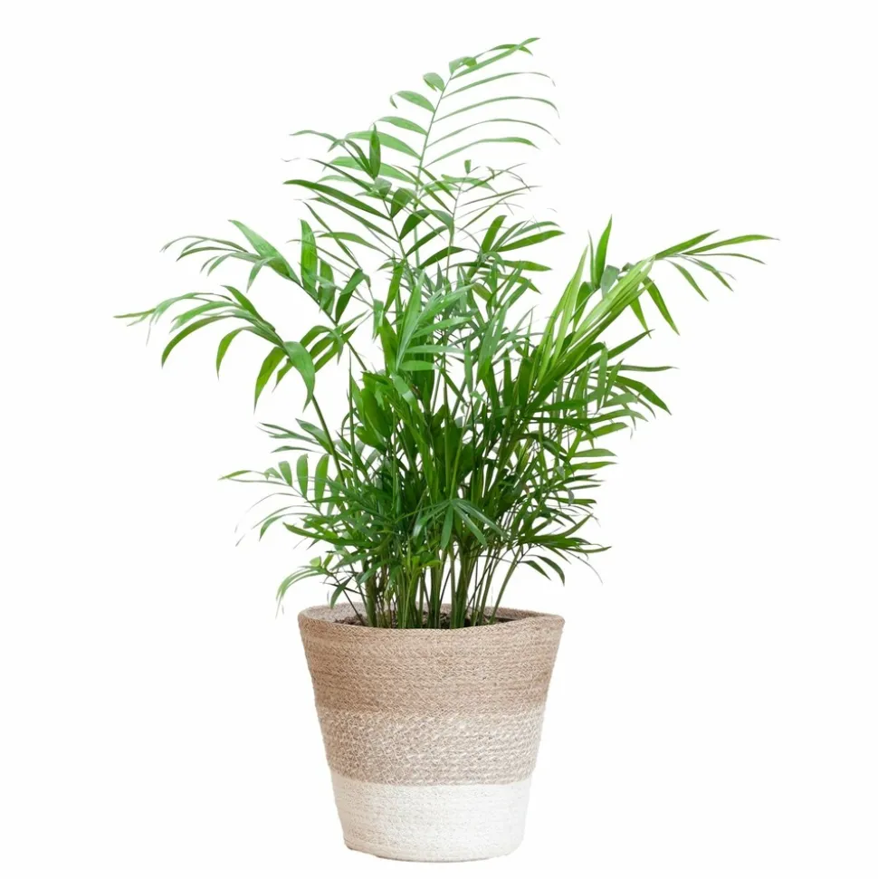 La Chamaedorea Elegans, également appelée Palmier Nain Mexicain, est une plante d’intérieur charmante avec ses feuilles élégantes en forme de plumes. Bien qu’elle ne produise pas de fleurs, son feuillage vert vif en fait une pièce maîtresse attrayante pour n’importe quel intérieur. Originaire des sous-bois humides et ombragés d’Amérique du Sud, cette plante s’épanouit sous une lumière indirecte, ce qui la rend parfaite pour les emplacements ombragés de votre maison.Son nom latin, Chamaedorea, dérivé du grec, signifie >, tandis que Elegans met en avant son allure gracieuse. Cette combinaison reflète parfaitement la nature discrète mais élégante de ce palmier. Facile à entretenir, la Chamaedorea Elegans nécessite peu d’arrosage et s’adapte à diverses conditions de lumière, à condition d’être protégée du soleil direct.Pour sublimer cette plante, vous aurez le choix parmi plusieurs cache-pots ou paniers décoratifs, dont le panier Sofia naturel. Fabriqué en herbes marines séchées et tressées, ce panier est doté d’une doublure plastique étanche et d’une teinte beige naturelle qui complète parfaitement le feuillage luxuriant de la plante. D’autres options de cache-pots sont également disponibles pour personnaliser votre décoration.Ajoutez une touche de verdure élégante et naturelle à votre intérieur avec cette plante polyvalente et un pot au choix, idéal pour transformer votre maison en un espace accueillant et apaisant.