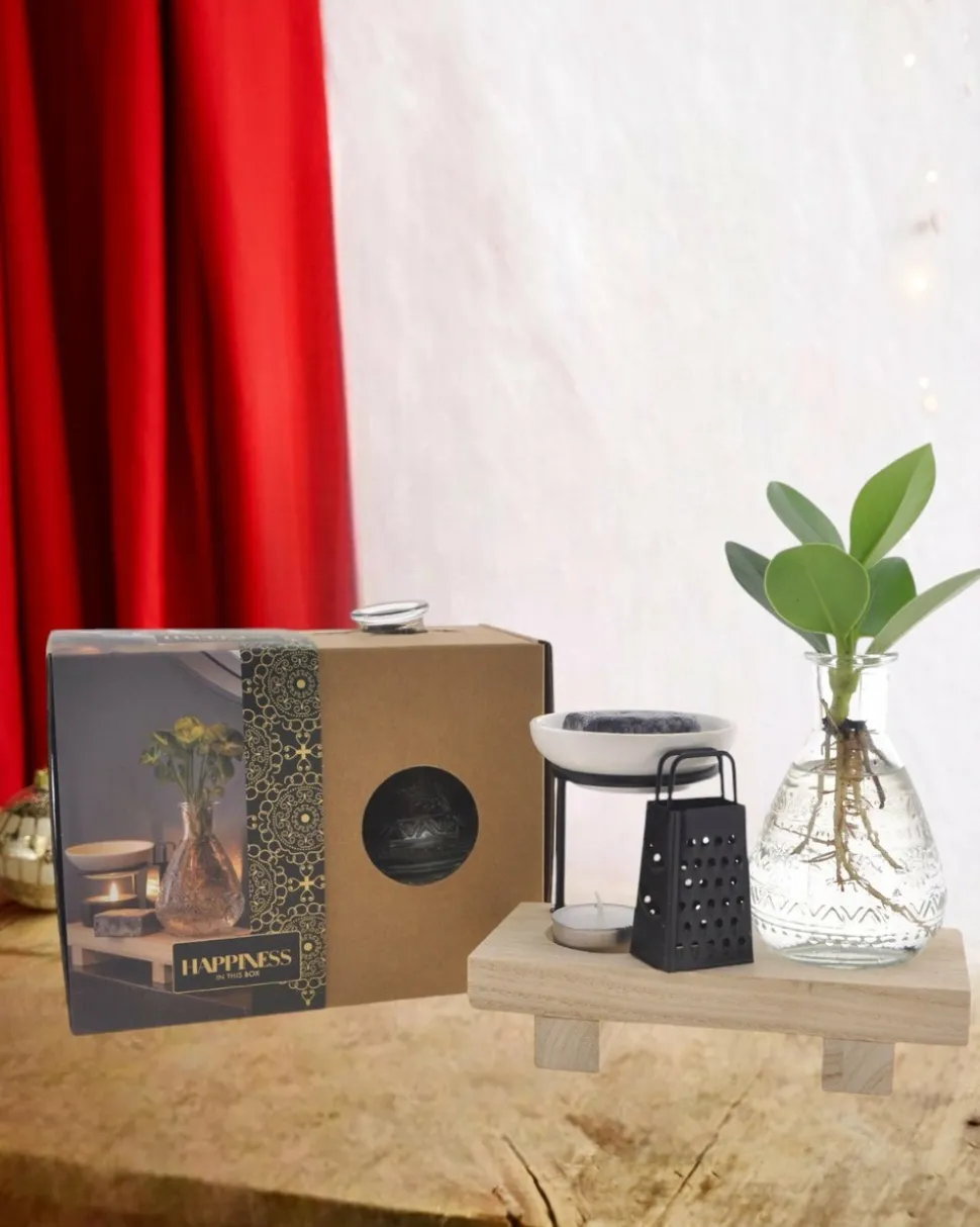 Un coffret idéal à offrir pour apaiser son environnement intérieur. Une plante en hydroculture, un diffuseur de senteur.