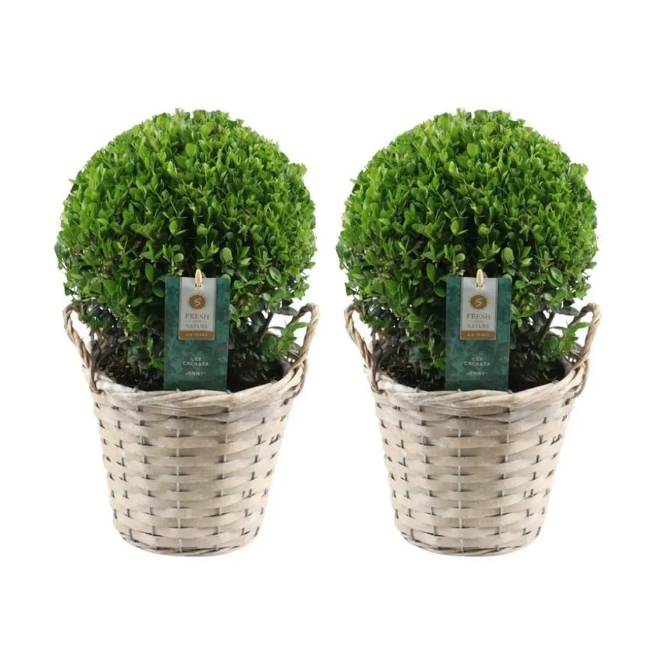 ### Description détailléeL’Ilex crenata ‘Jenny’ est une plante vivace, populaire pour sa facilité d’entretien et sa résistance aux conditions climatiques variées. Cette espèce de houx japonais est particulièrement valorisée en raison de son feuillage persistant, idéal pour créer des haies denses ou des bordures esthétiques. ‘Jenny’ se distingue par sa croissance modérée et son aptitude à être taillée selon diverses formes, ce qui la rend parfaite pour l’art topiaire. De plus, cette plante est reconnue pour sa capacité à s’adapter à différents types de sol, bien qu’elle préfère un sol légèrement acide à neutre.### Description physiqueL’Ilex crenata ‘Jenny’ présente un feuillage dense composé de feuilles ovales, légèrement crénelées, d’un vert foncé qui conserve sa couleur tout au long de l’année. Les feuilles mesurent généralement 1 à 3 cm de longueur, offrant une texture compacte idéale pour les aménagements paysagers minutieux. En été, de petites fleurs blanches discrètes apparaissent, suivies de baies noires qui persistent en hiver, ajoutant un intérêt visuel supplémentaire. ‘Jenny’ peut atteindre jusqu’à 1,5 mètre de hauteur et une largeur similaire, bien qu’elle soit souvent maintenue plus petite par la taille.