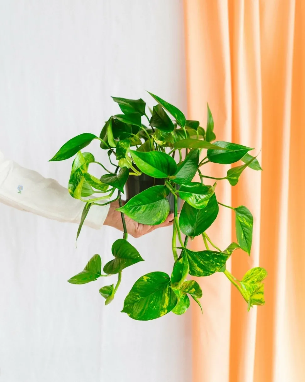Découvrez le Scindapsus (Epipremnum), une plante fascinante qui apporte une touche de verdure à n’importe quel espace. Cette plante suspendue est connue pour sa beauté sans effort et sa facilité d’entretien, ce qui en fait un choix idéal pour les jardiniers débutants et expérimentés.Physiquement, le Scindapsus est une plante grimpante avec des feuilles denses et luxuriantes. Les feuilles sont d’un vert intense avec des marbrures jaunes ou blanches, ajoutant une dimension de couleur à votre espace. Les tiges de la plante sont souples et peuvent être formées pour grimper ou retomber, selon votre style de décoration préféré.Le Scindapsus fleurit rarement en intérieur, mais lorsqu’il le fait, il produit de petites fleurs vertes qui se fondent dans le feuillage, ajoutant une subtile beauté. Cette plante est originaire des régions tropicales, ce qui signifie qu’elle préfère un environnement chaud et humide. Cependant, elle est étonnamment tolérante et peut survivre dans des conditions moins idéales.En termes de soins, le Scindapsus est une plante peu exigeante. Elle préfère être placée dans un endroit avec beaucoup de lumière indirecte et nécessite un arrosage régulier. Cependant, elle est également résistante à la sécheresse, ce qui signifie qu’elle peut survivre si vous oubliez de l’arroser de temps en temps.En résumé, le Scindapsus (Epipremnum) est une plante attrayante et facile à entretenir qui apporte une touche de nature à votre maison ou à votre bureau. Sa beauté luxuriante et sa capacité à prospérer avec un minimum de soins en font un choix populaire pour les jardiniers de tous niveaux.