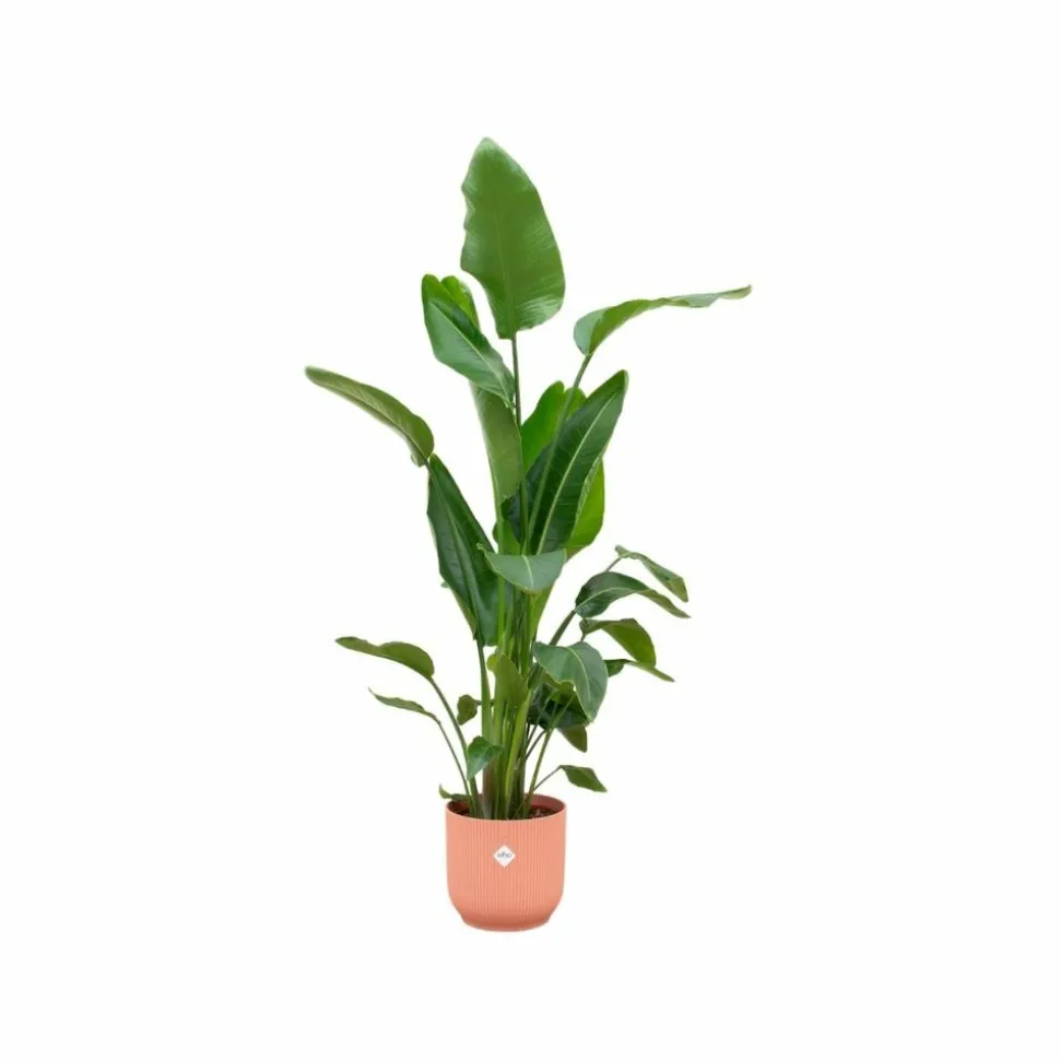 Strelitzia Nicolai avec Pot – Grandeur Tropicale et Élégance Naturelle (Ø 30 cm, ↕ 160 cm)Sublimez votre intérieur avec la Strelitzia Nicolai, une plante d’intérieur majestueuse et imposante qui apporte une véritable touche d’exotisme. Avec un diamètre de 30 cm et une hauteur impressionnante de 160 cm, cette plante est parfaite pour transformer les grands espaces tels que les salons spacieux, les vérandas ou les halls d’entrée en véritables havres tropicaux.Aussi appelée « oiseau de paradis géant », la Strelitzia Nicolai se distingue par ses longues feuilles élancées d’un vert intense, qui capturent la lumière et créent une ambiance à la fois apaisante et luxuriante. Son port vertical élégant et son feuillage robuste en font une pièce maîtresse de toute décoration intérieure, offrant une impression de grandeur et de sophistication.En choisissant l’option plante + pot, vous bénéficiez d’un prix plus avantageux que si vous achetiez la plante et le pot séparément. Plusieurs modèles de pots élégants sont disponibles pour sublimer la Strelitzia Nicolai et s’adapter harmonieusement à votre décoration intérieure. Cet ensemble plante + pot vous permet de créer un coin de nature tropicale chez vous, à un tarif compétitif.Facile à entretenir, la Strelitzia Nicolai prospère dans des environnements lumineux avec une lumière indirecte. Elle nécessite un arrosage modéré, ce qui en fait une plante d’intérieur idéale pour ceux qui souhaitent une plante visuellement saisissante, avec peu d’entretien.