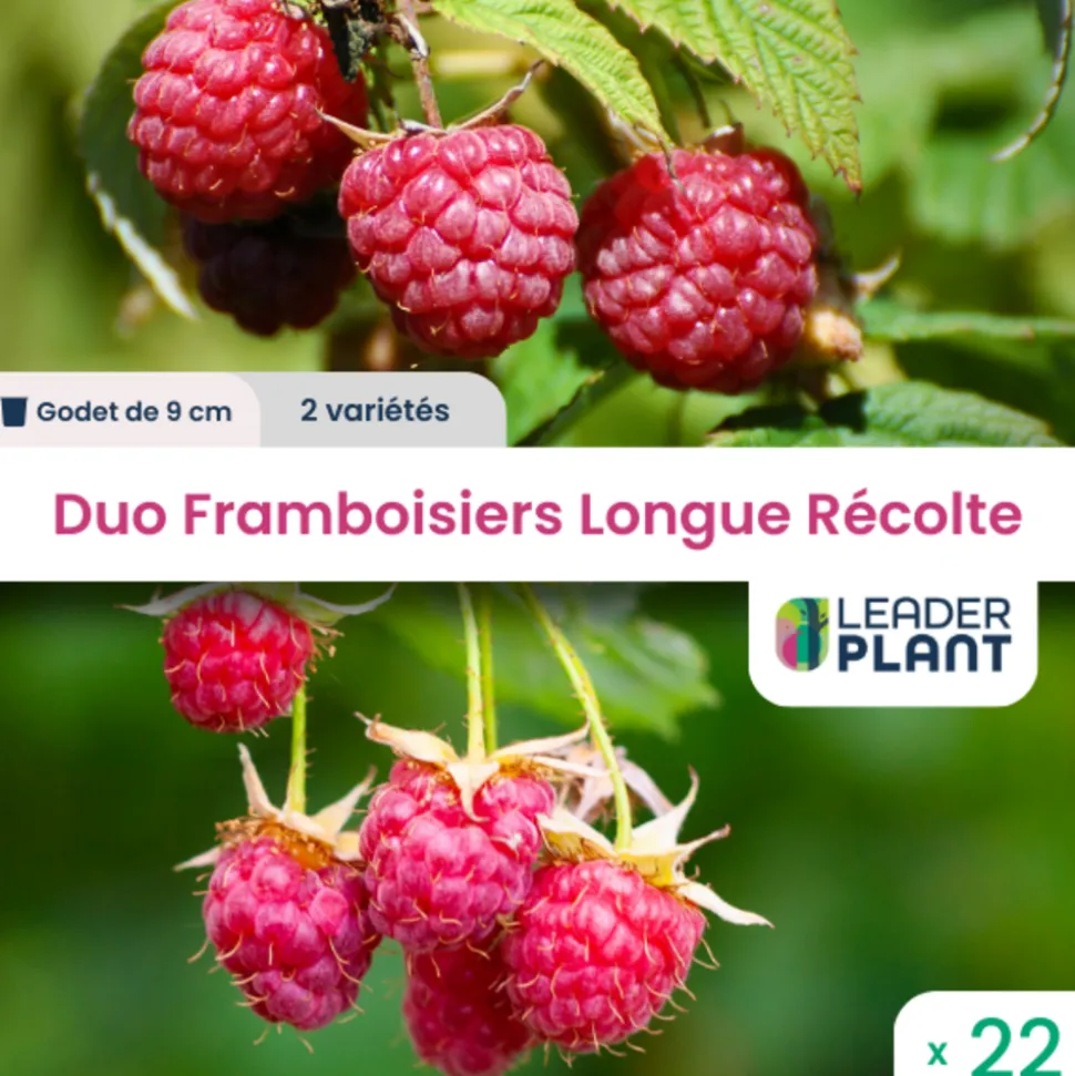 DUO Framboisiers Longue Récolte 2 variétés – lot de 22 godets
