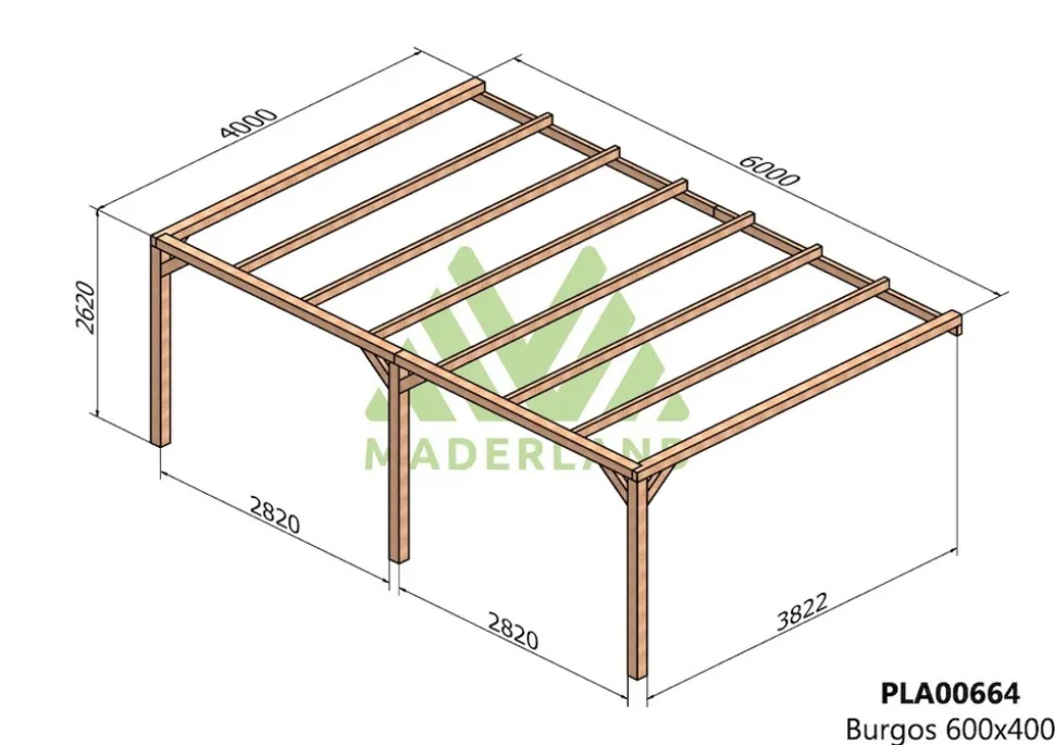 Optez pour la pergola bois adossée BURGOS, une solution robuste et esthétique en sapin nordique lamellé-collé, idéale pour sublimer votre terrasse.