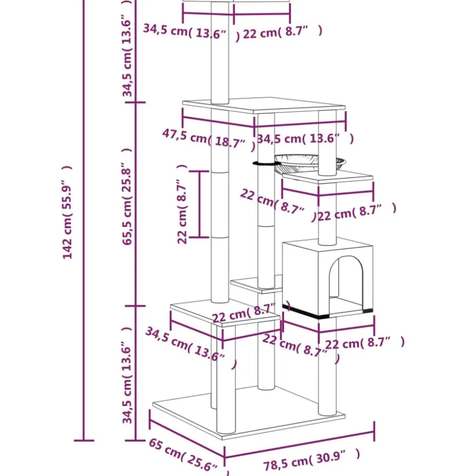 Avec cet arbre à chat, vos amis à fourrure peuvent vivre une vie de luxe ! Vos chats aimeront gratter, grimper, se percher, se cacher et se reposer dessus. Arbre à chat tout-en-un : l’arbre à chat à plusieurs niveaux offre à votre chat un endroit amusant et compact pour jouer, faire de l’exercice et une maison chaude pour une bonne sieste. Il comprend une maison, un panier et des plates-formes.Peluche confortable : la couverture en peluche douce pour la peau et moelleuse permet à vos amis félins de jouer confortablement.Corde en sisal durable : les poteaux de ce centre d’activités pour chats sont enroulés avec des cordes en sisal naturel, qui offrent aux chats une sortie de grattage saine. Remarque :Chaque produit est livré avec un manuel de montage dans la boîte pour un montage facile.
