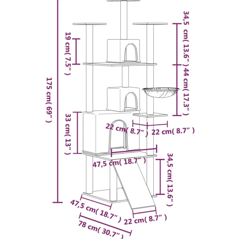 Gardez vos adorables chats amusés sans fin avec cet arbre à chat tout-en-un ! Tour à chat tout-en-un : le mobilier pour chats à plusieurs niveaux est conçu avec 3 maisons, 1 hamac, 1 échelle et des plates-formes, offrant un endroit parfait pour que vos chats puissent grimper, se percher, se gratter, se cacher et aussi se détendre.Matériau moelleux et doux : la peluche très épaisse et douce est bien ventilée, résistante aux rayures, super confortable et chaude.Poteaux en sisal naturel : les poteaux en sisal naturel, résistants et solides de l’arbre à chat, sont parfaits pour que vos chats adorés puissent satisfaire leur instinct de grattage et évitent qu’ils n’endommagent pas vos meubles. Remarque :Chaque produit est livré avec un manuel de montage dans la boîte pour un montage facile.