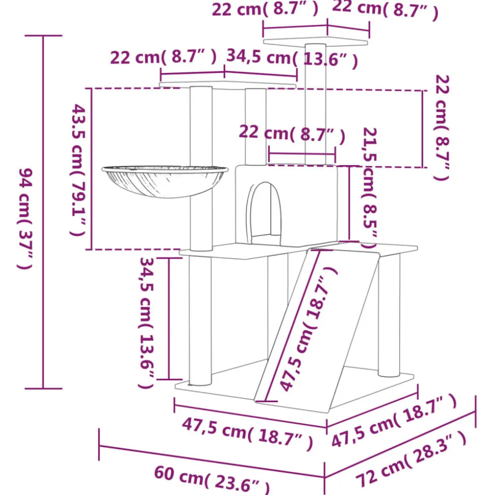 Gardez vos adorables chats amusés sans fin avec cet arbre à chat tout-en-un ! Tour à chat tout-en-un : le mobilier pour chats à plusieurs niveaux est conçu avec 1 maison, 1 hamac, 1 échelle et des plates-formes, offrant un endroit parfait pour que vos chats puissent grimper, se percher, se gratter, se cacher et aussi se détendre.Matériau moelleux et doux : la peluche très épaisse et douce est bien ventilée, résistante aux rayures, super confortable et chaude.Poteaux en sisal naturel : les poteaux en sisal naturel, résistants et solides de l’arbre à chat, sont parfaits pour que vos chats adorés puissent satisfaire leur instinct de grattage et évitent qu’ils n’endommagent pas vos meubles. Remarque :Chaque produit est livré avec un manuel de montage dans la boîte pour un montage facile.