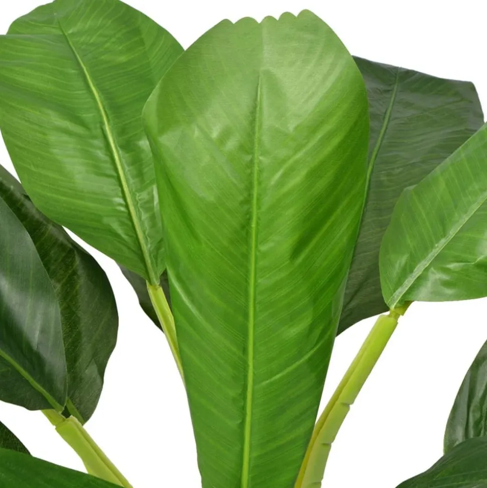 Ajoutez de la verdure à votre intérieur avec ce bananier artificiel réaliste. Le bananier fait 150 cm de haut et sera le choix idéal pour votre intérieur de maison ou de bureau. La plante a 10 feuilles avec des détails parfaits, lui donnant un aspect complet et réaliste et elle ne se fanera jamais. Les feuilles ont de légères variations de couleur pour un aspect et une sensation réalistes. Cette plante artificielle décorative est faite de matériaux de haute qualité et le tronc est en bois véritable, ce qui la rend très durable. Elle est idéale pour ceux qui veulent avoir des plantes dans leur maison mais n’ont pas le temps de s’occuper d’elles. La livraison comprend 1 plante artificielle et 1 pot.