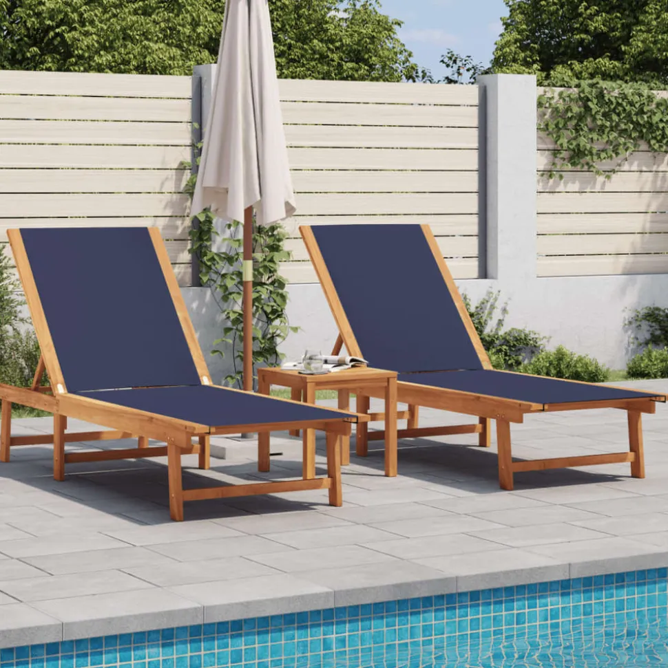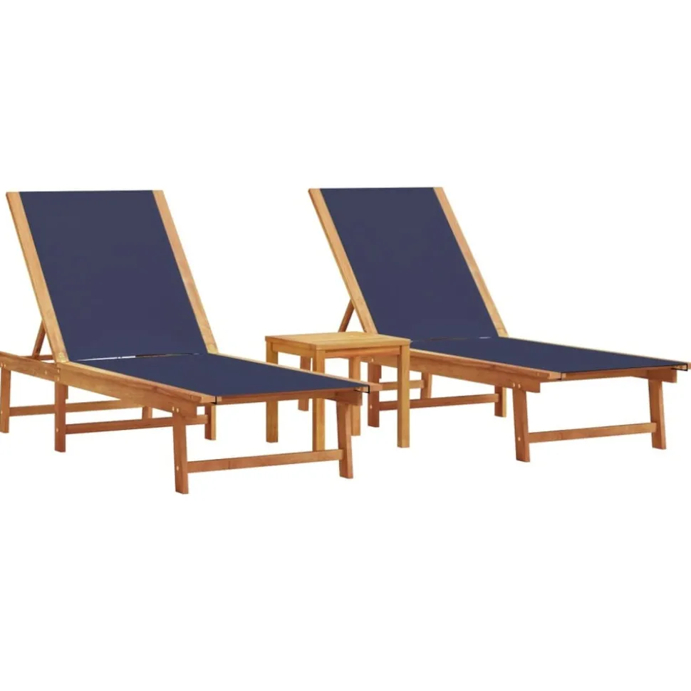 Ces chaises longues classiques avec table d’appoint sont idéales pour prendre un bain de soleil et vous détendre près de la piscine, sur la terrasse ou dans le jardin. Robuste et stable : le bois d’acacia massif est connu pour sa solidité et sa durabilité. Ses couleurs variées et ses grains uniques lui confèrent un aspect attrayant. Sa stabilité et sa résistance aux intempéries en font un matériau idéal pour la fabrication de meubles d’intérieur et d’extérieur.Durable et longue durée de vie : le tissu textilène est apprécié pour sa durabilité, résistance à l’eau et à la décoloration, facilité d’entretien et protection contre les rayons UV et la moisissure, ce qui en fait un choix idéal pour le meuble d’extérieur et les structures d’ombrage.Dossier réglables : ce transat est doté d’un dossier à 5 positions réglables, ce qui vous permet de trouver facilement la position la plus confortable et la plus appropriée pour la détente.Table d’appoint pratique : ce mobilier d’extérieur comprend une table d’appoint, offrant un endroit pratique pour garder vos essentiels à portée de main. Bon à savoir :Pour que vos meubles d’extérieur restent beaux, nous vous recommandons de les protéger avec une housse imperméable.