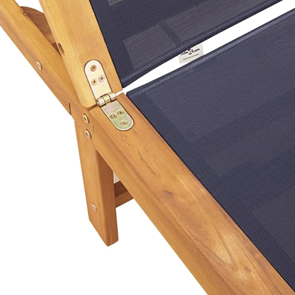 - Matériau : bois d’acacia massif avec finition à l’huile, tissu textilène