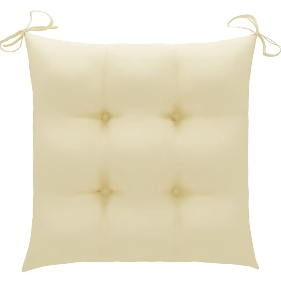 Cet ensemble de chaises de jardin en bois présente un design intemporel. Les chaises d鈥檈xtérieur conviennent à tous les environnements, tels que les maisons, les bureaux, les bars et les cafés, grâce à leur design simple mais élégant. Fabriqué en bois dur de teck extrêmement durable, cet ensemble de meubles en teck a été chevronné, séché au four puis finement poncé pour lui donner un aspect très lisse. Le bois de teck est connu pour sa résistance exceptionnelle aux intempéries, ce qui le rend bien plus adapté aux meubles de jardin que tout autre type de bois. Le bois de teck est le choix idéal si vous souhaitez acheter un meuble de jardin durable. Grâce à la surface sablée, les chaises de salle à manger sont résistantes aux intempéries et faciles à nettoyer. Elles peuvent également être pliées pour économiser de l鈥檈space de stockage lorsqu’elles ne sont pas utilisées. De plus, les coussins fournis offrent un confort supplémentaire. Chaque coussin dispose de 2 ensembles de cordes pour le fixer solidement sur la chaise. Remarque : afin de prolonger la durée de vie de vos meubles d’extérieur, nous vous recommandons de les nettoyer régulièrement et de ne pas les laisser à l’extérieur sans protection inutilement.Nettoyage : utiliser une solution savonneuse douceStockage : si possible, stockez dans un endroit frais et sec à l’intérieur. Si le produit est stocké à l’extérieur, protégez-le avec une housse imperméable. Essuyez et séchez l’excès d’eau ou de neige des surfaces planes après la pluie ou une chute de neige. Permettez une circulation d’air suffisante afin d’éviter les dommages liés à l’humidité.