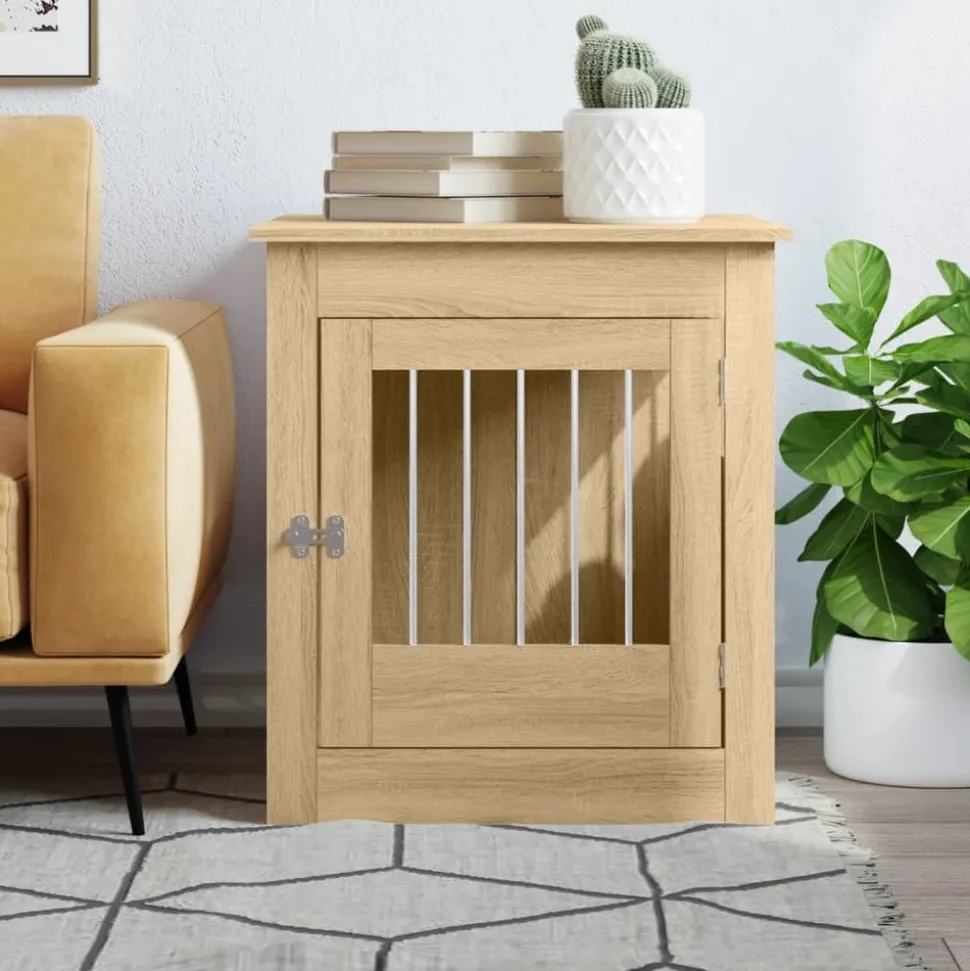 Ce meuble de cage pour chien, servant à la fois de cage pour chien et de table d’appoint, constitue un supplément pratique et accrocheur à votre salon. Construction robuste : la niche est faite de fils d’acier et de bois d’ingénierie, assurant à la fois sécurité et durabilité. Le bois d’ingénierie est d’une qualité exceptionnelle avec une surface lisse et présente également résistance, stabilité et résistance à l’humidité.Fonction 2 en 1 : cette niche pour chien allie parfaitement style et fonctionnalités. Elle offre non seulement à votre ami à quatre pattes un endroit confortable pour faire une sieste, mais sert également de table d’appoint pour que vous puissiez placer vos décorations préférées.Design avec ventilation : les fenêtres en fil d’acier permettent à l’air de circuler correctement dans la cage et évitent les mauvaises odeurs, créant ainsi un environnement de sommeil confortable pour vos chiens.Porte verrouillable : cette cage pour chien est équipée d’une porte verrouillable pour plus de sécurité. En outre, vous pouvez installer la porte à gauche ou à droite selon vos besoins.