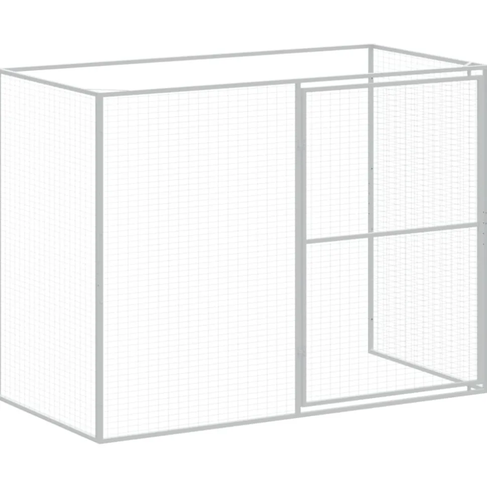 Offrez sécurité et confort à vos compagnons à quatre pattes grâce à cette niche avec enclos. Utilisation polyvalente : Associée à l’enclos allongé, cette niche polyvalente offre un grand espace à votre animal. Elle offre de multiples utilisations : jouer, faire de l’exercice, dresser ou simplement assurer la sécurité de votre chiot. Ce sera le paradis de jeu idéal pour vos amis à quatre pattes !Construction durable : Grâce à sa construction robuste en acier galvanisé, la niche pour chien est durable et conçue pour durer.Conception en maille : La conception en maille de l’enclos prolongé permet d’éviter les méfaits et les accidents inattendus tout en permettant la ventilation.Toit pratique : Le toit de la cage protège le chiot du soleil, de la pluie, de la neige et d’autres conditions météorologiques.Accès pratique : Il y a une entrée à la maisonnette et une porte avec un loquet sur l’enclos prolongé, toutes deux facilitant l’entrée et la sortie.Bon à savoir :Pour éviter les dommages causés par une forte accumulation de neige, nous vous recommandons de dégager le toit régulièrement en hiver.
