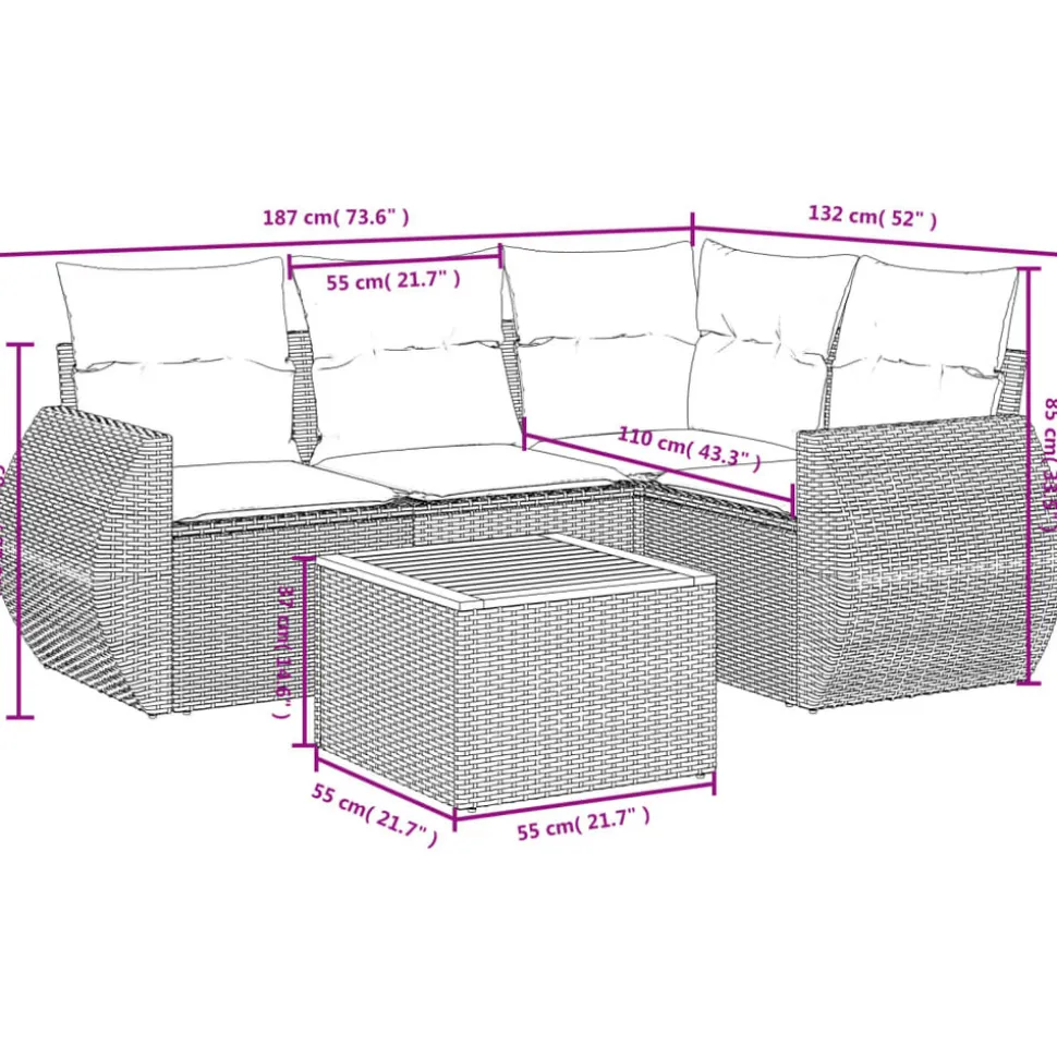 Cet ensemble de canapés de jardin est le complément parfait de votre arrière-cour, terrasse ou patio, offrant un espace confortable et accueillant pour discuter avec la famille et les amis ou simplement se détendre et profiter de l’extérieur. Matériau durable : la résine tressée, également connue sous le nom de poly rotin, est un matériau synthétique solide et nécessitant peu d’entretien qui ressemble au rotin naturel. Il est léger, facile à nettoyer et couramment utilisé pour les meubles d’extérieur en raison de sa durabilité et de ses propriétés de résistance aux intempéries.Dessus stable et facile à nettoyer : cette table de jardin a un dessus en bois d’acacia robuste, durable et facile à nettoyer avec un chiffon humide. Fonction de rangement avec sac résistant à l’eau : chaque siège de jardin dispose d’un espace de rangement sous l’assise, complété par un sac résistant à l’eau pour ranger les coussins, les jouets et d’autres objets. Les sacs intérieurs sont dotés d’un couvercle et peuvent être solidement fixés aux sièges à l’aide de bandes auto-agrippantes pour plus de stabilité.Expérience d’assise confortable : ce mobilier d’extérieur, doté de coussins épais, offre une expérience d’assise confortable.Conception modulaire : cet ensemble de meubles d’extérieur a une conception modulaire, ce qui le rend complètement flexible et facile à déplacer, afin que vous puissiez créer un agencement de meubles d’extérieur personnalisé. Bon à savoir :Pour que vos meubles d’extérieur restent beaux, nous vous recommandons de les protéger avec une housse imperméable.