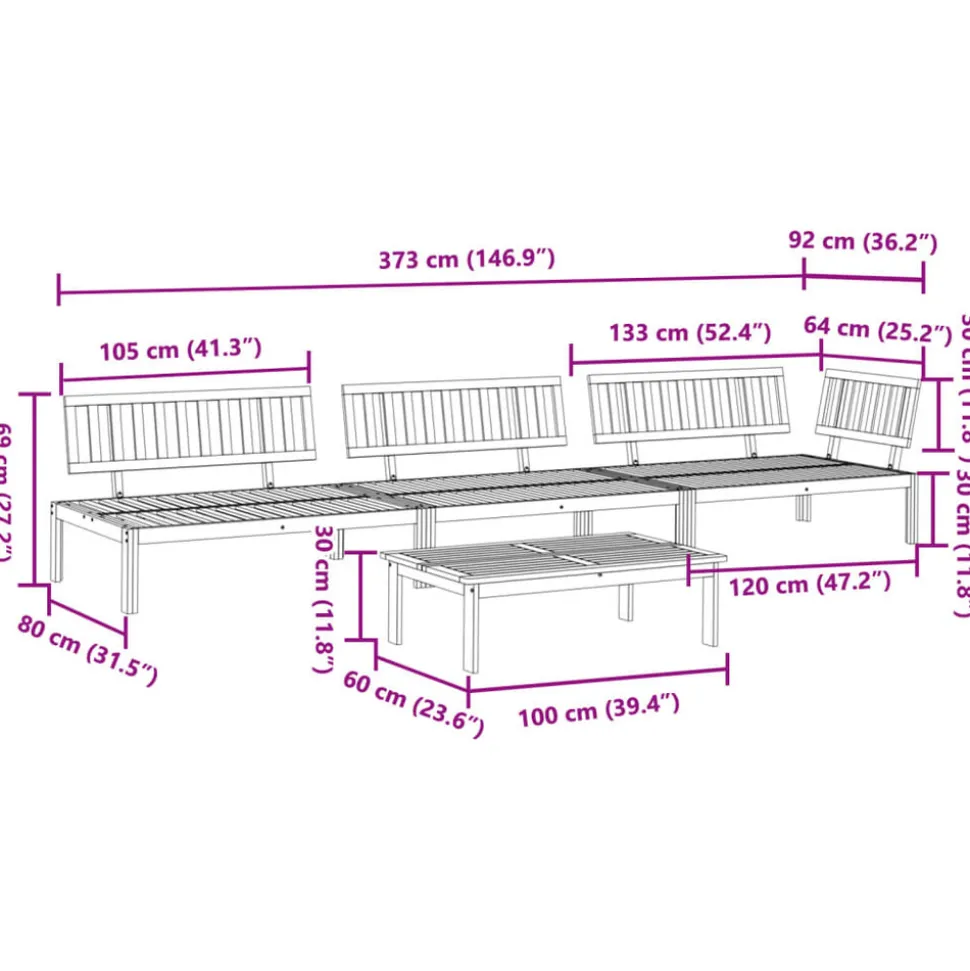 Cet ensemble de canapés palette en bois comprend 1 table et 3 canapés. C’est un excellent choix pour une utilisation relaxante en extérieur. Matériau durable : le bois d’acacia massif est un matériau naturel magnifique. Le bois d’acacia est un bois dur tropical, qui est dense, robuste et durable. Sa finition à l’huile permet à cet ensemble de meubles d’être utilisée à l’extérieur.Expérience d’assise confortable : le dossier ajoute un confort d’assise supplémentaire au canapé d’extérieur. Design modulaire : le canapé sectionnel est flexible et facile à déplacer. Vous pouvez le combiner avec d’autres segments modulaires disponibles dans le menu déroulant pour créer vos propres configurations de salon de jardin ! Bon à savoir :Pour que vos meubles d’extérieur restent beaux, nous vous recommandons de les protéger avec une housse imperméable.Le coussin n’est pas inclus avec ce canapé palette. Nous offrons un coussin de palette standard de 120×80 cm. Vous pouvez consulter notre boutique pour trouver un coussin assorti.
