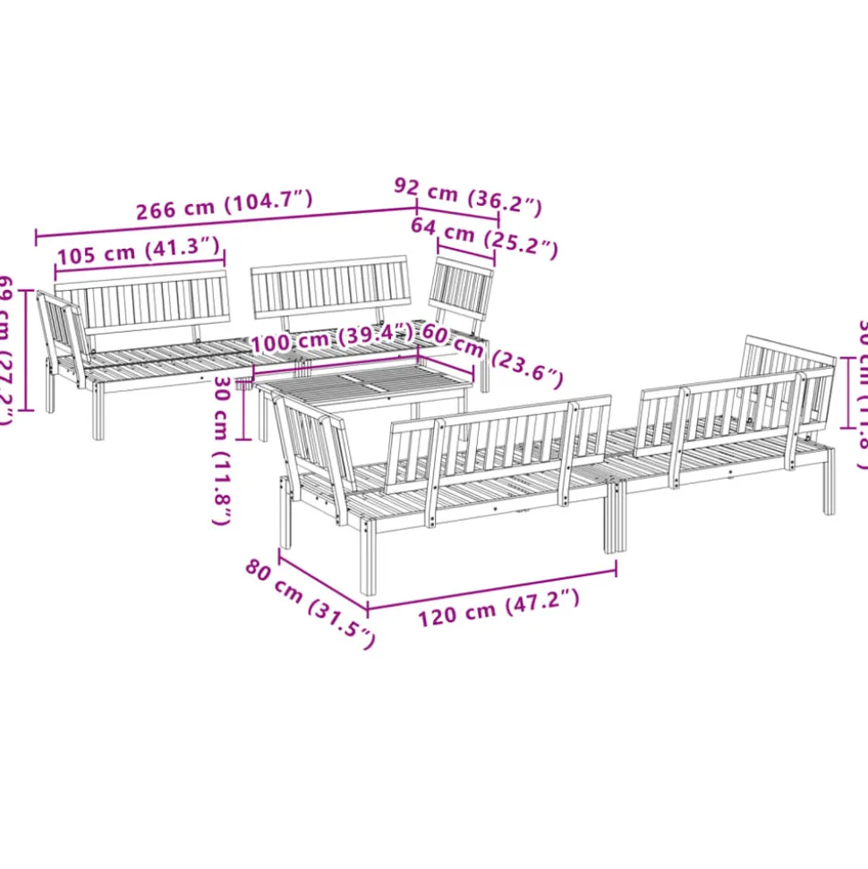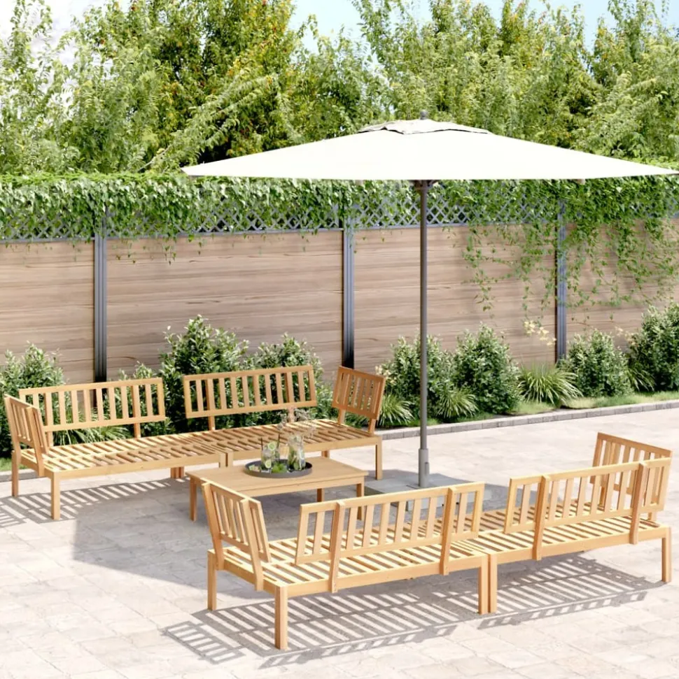 Cet ensemble de canapés palette en bois comprend 1 table et 4 canapés. C’est un excellent choix pour une utilisation relaxante en extérieur. Matériau durable : le bois d’acacia massif est un matériau naturel magnifique. Le bois d’acacia est un bois dur tropical, qui est dense, robuste et durable. Sa finition à l’huile permet à cet ensemble de meubles d’être utilisée à l’extérieur.Expérience d’assise confortable : le dossier ajoute un confort d’assise supplémentaire au canapé d’extérieur. Design modulaire : le canapé sectionnel est flexible et facile à déplacer. Vous pouvez le combiner avec d’autres segments modulaires disponibles dans le menu déroulant pour créer vos propres configurations de salon de jardin ! Bon à savoir :Pour que vos meubles d’extérieur restent beaux, nous vous recommandons de les protéger avec une housse imperméable.Le coussin n’est pas inclus avec ce canapé palette. Nous offrons un coussin de palette standard de 120×80 cm. Vous pouvez consulter notre boutique pour trouver un coussin assorti.