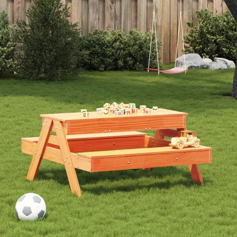 Cette table de pique-nique permet aux enfants de manger confortablement à l’extérieur, de jouer à des jeux de société et de se divertir avec leurs amis. Durable et robuste : la table de pique-nique de jardin est fabriquée en bois de pin massif et possède une structure robuste et stable qui peut accompagner votre enfant pendant longtemps.Ventilé : les sièges spacieux avec un design à lattes offrent une assise confortable à votre enfant, augmentent la circulation de l’air et empêchent l’accumulation d’eau.Applications multiples : cette table de pique-nique pour enfants est parfaite pour les pique-niques, les jeux, le dessin et d’autres activités amusantes. De plus, vous pouvez retirer le panneau central en bois pour révéler un bac à sable.Scénarios polyvalents : cette table de jardin est le meuble idéal pour les enfants dans les jardins. Elle convient aussi bien à une utilisation résidentielle qu’à une utilisation quotidienne dans les écoles ou les parcs. Bon à savoir :Pour que vos meubles d’extérieur restent beaux, nous vous recommandons de les protéger avec une housse imperméable.