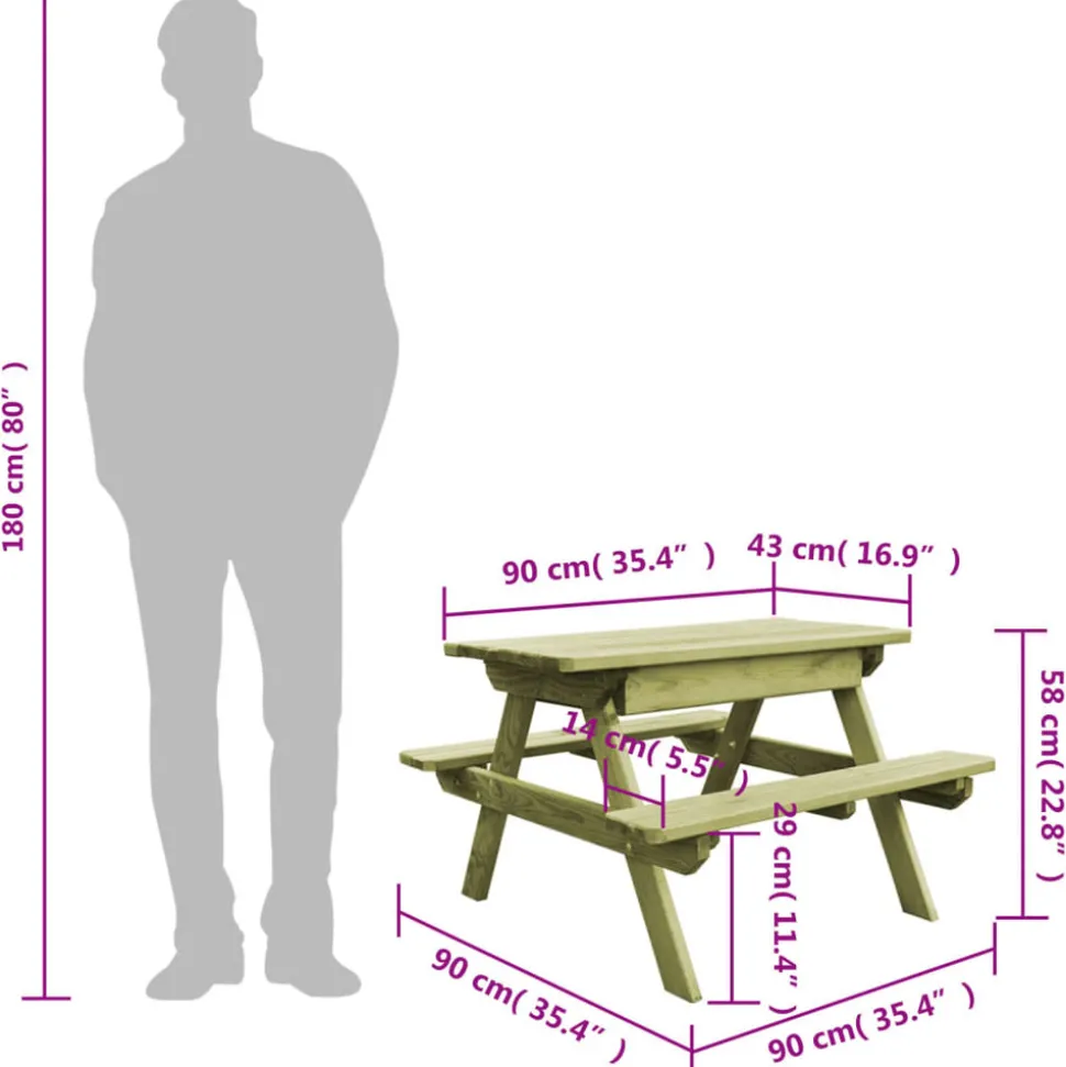Cette table de pique-nique de jardin en bois avec bancs ajoutera une touche de style naturel à votre espace de vie extérieur avec son design rustique. Composé d’une grande table et de 2 bancs, cet ensemble d’extérieur est idéal pour votre famille et vos amis pour passer des bons moments ! L’ensemble de jardin est fabriqué en bois de pin imprégné de haute qualité, ce qui le rend durable, résistant aux intempéries et à la pourriture. Il y a un grand espace de rangement sous le dessus de table pour garder vos petits objets bien rangés. Il est facile à déplacer pour s’adapter à n’importe quel décor extérieur. Cet ensemble est facile à assembler. Veuillez noter que le bois est un produit naturel et peut présenter des imperfections.