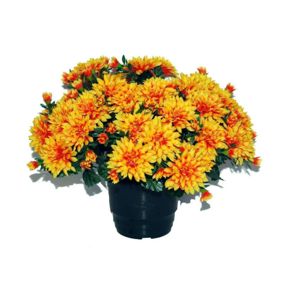 Ce pot mélange de beaux chrysanthèmes avec des pomponettes, une marguerite aux fleurs vaporeuses. Cette composition de couleur tabac sera du plus bel effet dans votre jardin.