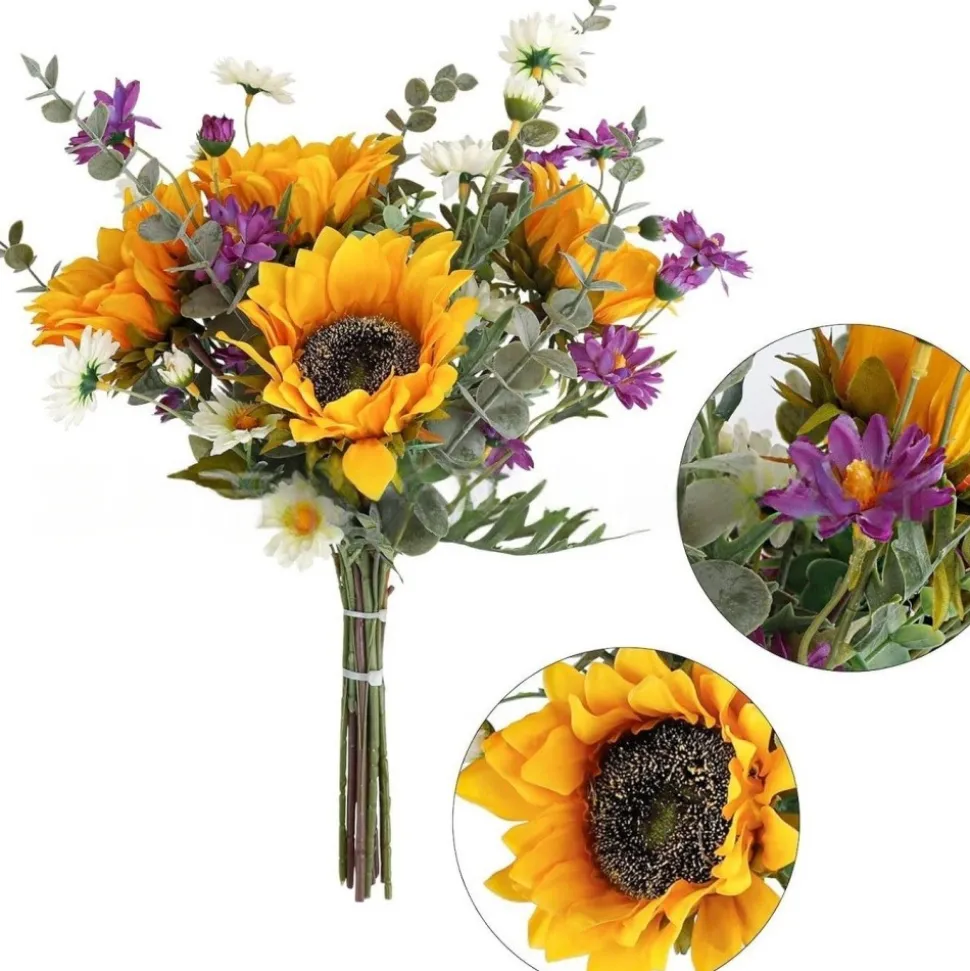 ???? Énergie solaire : Composition dynamique associant tournesol vibrant, marguerites gracieuses et eucalyptus frais