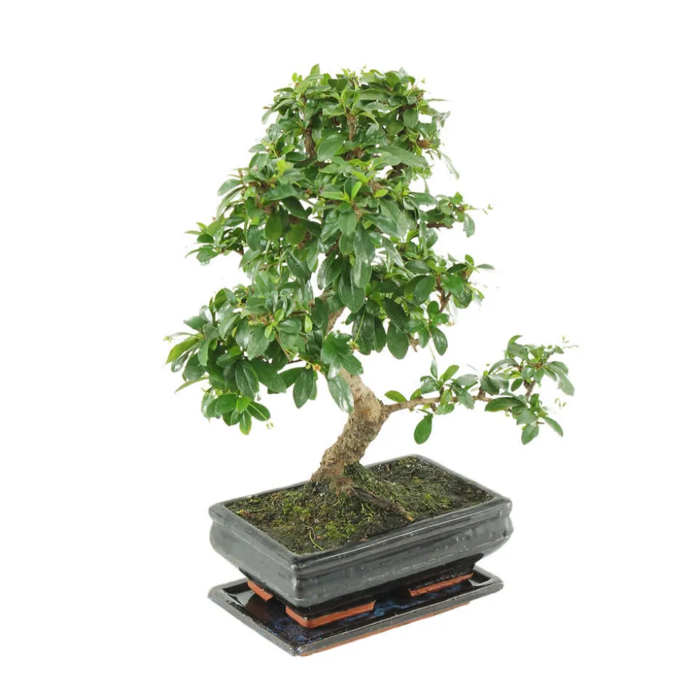 Carmona retusa est un arbre tropical, originaire du Sud de la Chine, au port buissonnant, pouvant atteindre 2 m de hauteur. Feuillage persistant, vert. Fleurs blanches en été, suivies de fruits globuleux verts devenant orange par la suite. Très utilisé en bonsaï d’intérieur. Croissance rapide. Plage de température: +15°C,+ 25°C. Il doit subir une température de 15°C pendant la période d’hiver. Le placer à la lumière vive sans soleil direct, dans un endroit aéré sans courant d’air froid. Vous pouvez le sortir une heure par jour en plein soleil à condition de lui maintenir une humidité ambiante. La motte doit toujours être humide. Ne pas laisser sécher le substrat. Vaporisez fréquemment. Rempotage tous les 2-3 ans, en juin. Taille à la fin de l’hiver et pendant toute la période de croissance.