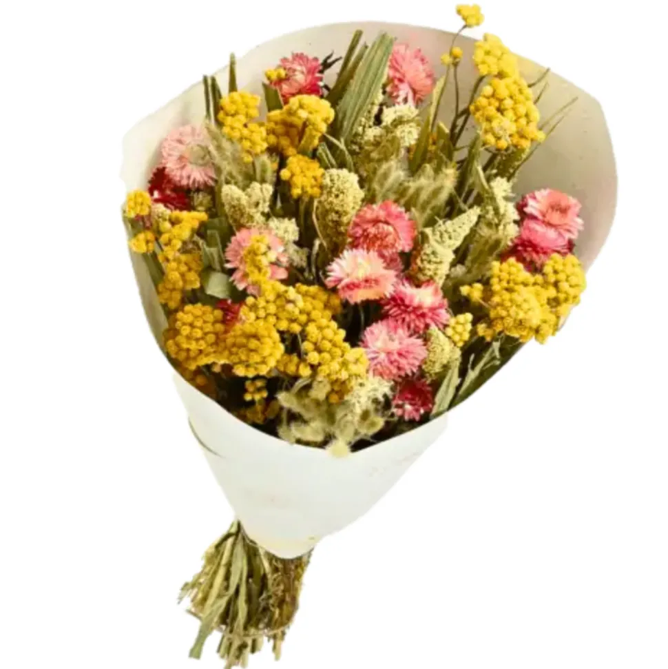 Ajoutez une touche de chaleur et de joie à votre décoration avec le Bouquet de Fleurs séchées Prestige Mix Jaune Rose 50 cm !