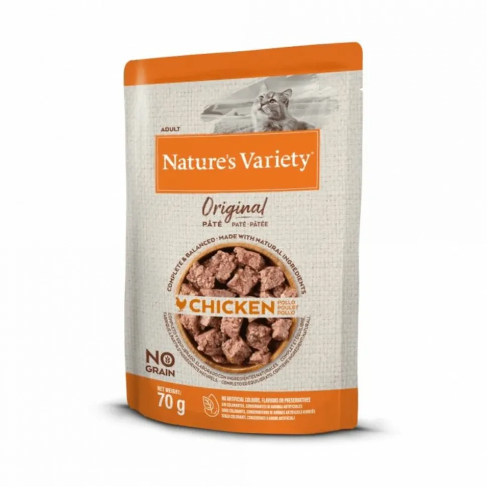 Les PÂTÉES ORIGINAL SANS CEREALES CHAT POULET – NATURE’S VARIETY sont des pâtées 100% naturelles, sans céréales, complètes, équilibrées au poulet pour les chats adultes qui favorisent une bonne santé et une bonne vitalité de l’animal.