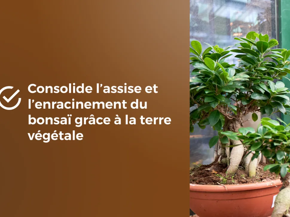 – Consolide l&aposassise et l&aposenracinement du bonsaï grâce à la terre végétale.