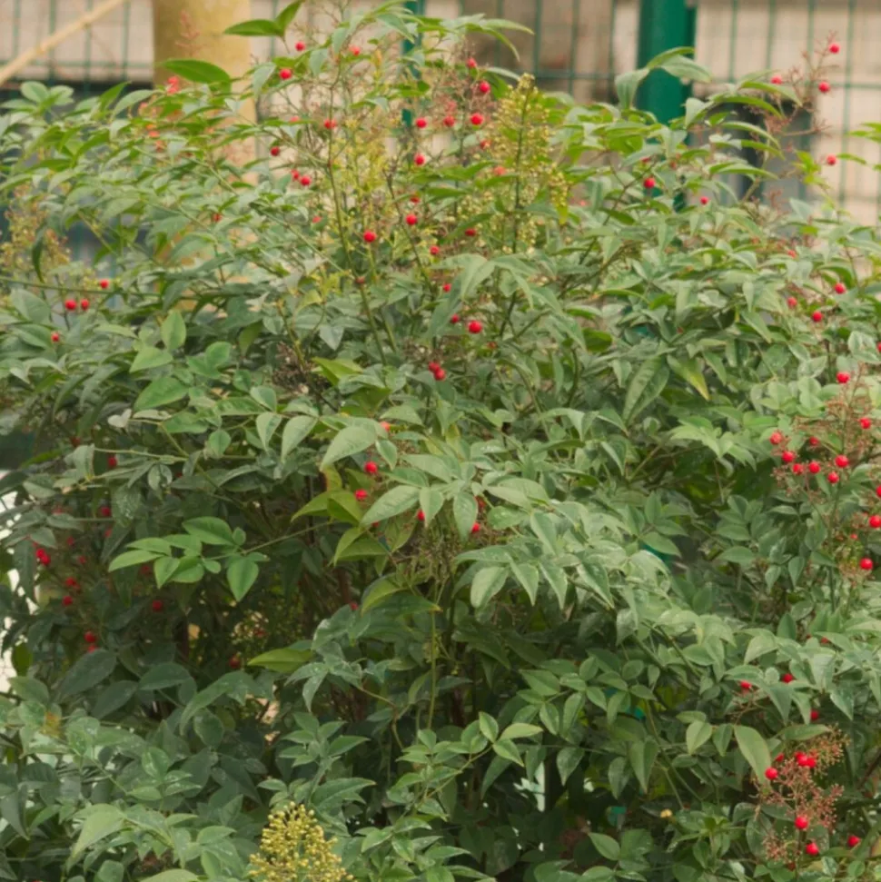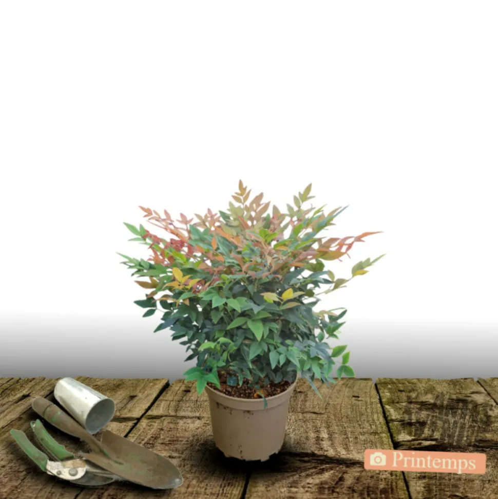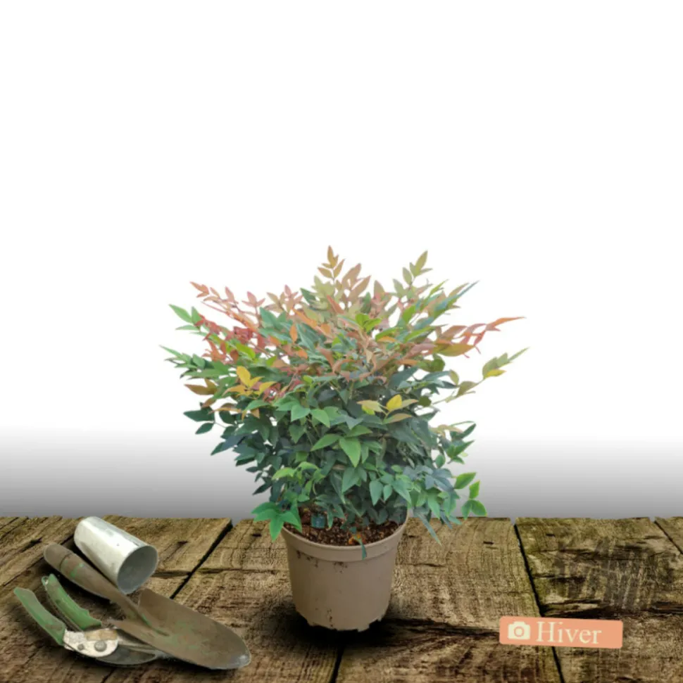 Nandina domestica ‘Gulf Stream’, le bambou sacré aux couleurs flamboyantesLe Nandina domestica ‘Gulf Stream’, également connu sous le nom de bambou sacré ‘Gulf Stream’, est un arbuste persistant originaire d’Asie du Sud-Est. Cette variété horticole récente se distingue par son feuillage fin et élégant qui change de couleur au fil des saisons, offrant un spectacle visuel saisissant.Description:Taille: Il atteint généralement une hauteur de 1 mètre à maturité, pour une envergure similaire. Sa croissance est lente et compacte, le rendant idéal pour les petits jardins ou les potées.Feuillage: La caractéristique principale du Nandina domestica ‘Gulf Stream’ est son feuillage. Les jeunes pousses émergent d’un rose tendre au printemps, puis évoluent vers un vert clair en été. À l’automne, le feuillage se pare de magnifiques tons rouge-orangé, apportant une touche de chaleur aux jardins.Floraison: En été, de petites fleurs blanc crème mellifères apparaissent en panicules dressées. Elles sont suivies, en automne, de baies rondes d’un rouge vif brillant qui persistent longtemps sur l’arbuste.Rusticité: Le Nandina domestica ‘Gulf Stream’ est rustique jusqu’à -15°C. Il préfère les sols riches, humifères, drainés et frais, en exposition mi-ombragée ou ensoleillée.Atouts:Feuillage d