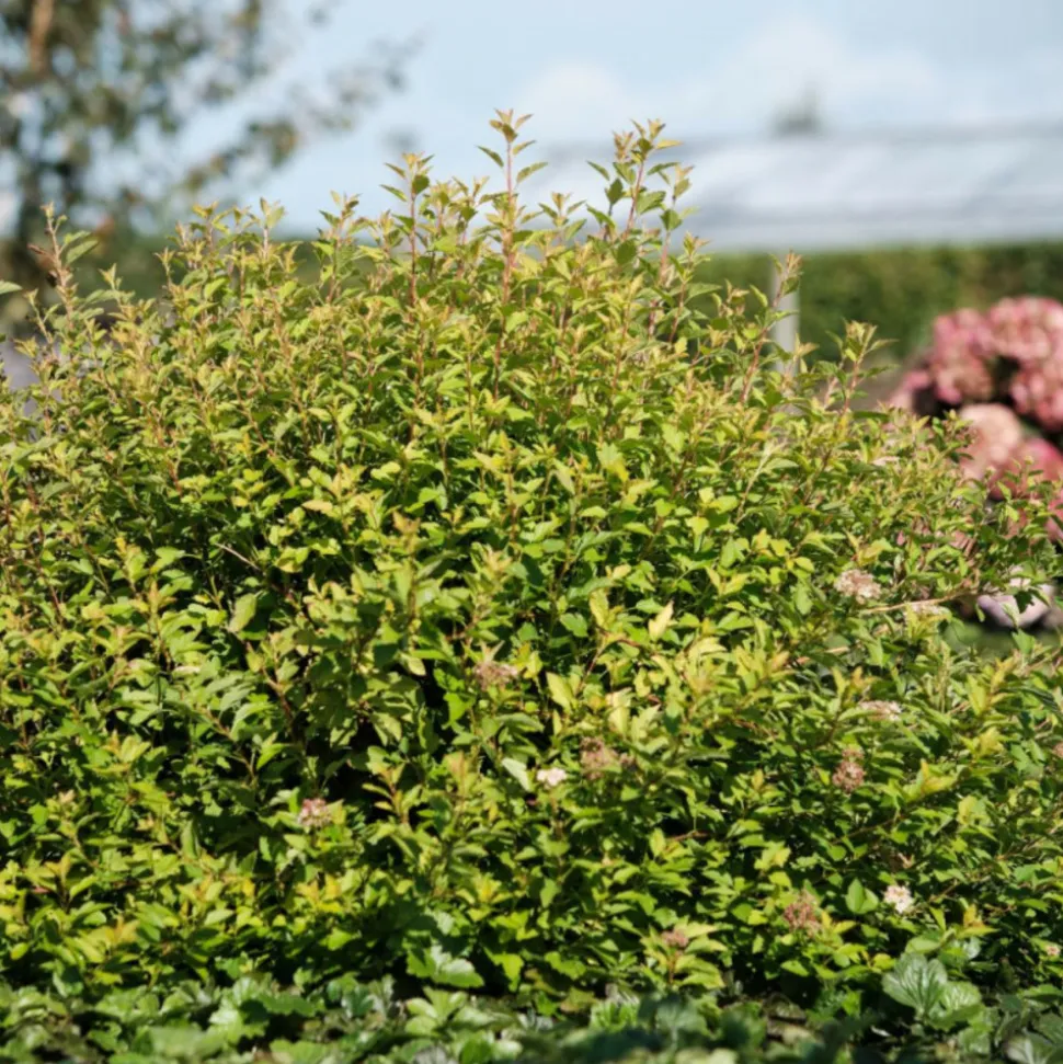 Physocarpus opulifolius Raspberry Lemonade® ‘ZLEYel2’ : Un éclat de couleurs dans votre jardinLe Physocarpus opulifolius Raspberry Lemonade® ‘ZLEYel2’, communément appelé Physocarpe à feuilles d’obier ou Ninebark, est un arbuste ornemental qui se distingue par son feuillage particulièrement attrayant. Son nom évoque à merveille les couleurs vives et contrastées de ses feuilles, rappelant les saveurs fruitées de la framboise et du citron.Un feuillage spectaculaireCouleurs vibrantes : Les jeunes pousses arborent une teinte rose framboise qui évolue progressivement vers un jaune citron éclatant à mesure que les feuilles mûrissent. Cette combinaison de couleurs crée un effet visuel saisissant et dynamique tout au long de la saison.Forme et texture : Les feuilles sont lobées et légèrement dentées, ajoutant une touche de finesse à l’ensemble. Leur texture est légèrement rugueuse, ce qui leur donne un aspect naturel et rustique.Floraison et fructificationFloraison estivale : Au printemps et en été, le Physocarpus opulifolius Raspberry Lemonade® ‘ZLEYel2’ produit de petites fleurs blanches réunies en corymbes. Ces fleurs sont mellifères et attirent les insectes pollinisateurs dans votre jardin.Fruits décoratifs : Après la floraison, de petites capsules fructifères apparaissent, ajoutant un intérêt supplémentaire à la plante. Ces fruits sont généralement de couleur rouge corail et persistent sur l’arbuste pendant un certain temps.Port et croissancePort compact et dense : Cet arbuste a une croissance relativement rapide et adopte un port buissonnant et arrondi. Ses branches sont denses et s’étalent légèrement, créant un effet de masse végétale intéressant.Tai