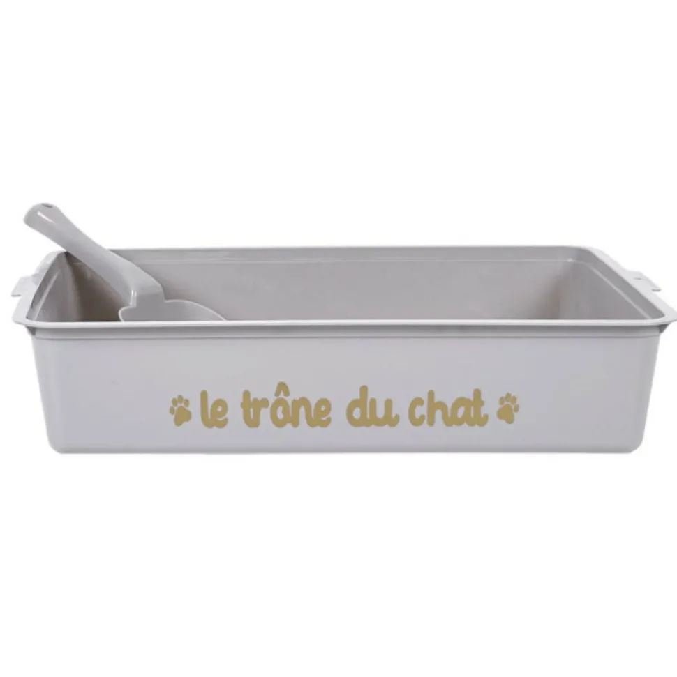 Dimensions : L. 42 x l. 31,5 x H. 9 cmMatière : 100% PlastiqueSpécificités :Pratique & UtileBac à litière pour chatAvec une pelleInscription « Le trône du chat »Forme rectangulairePoids : 0,29 kgCouleur : Gris