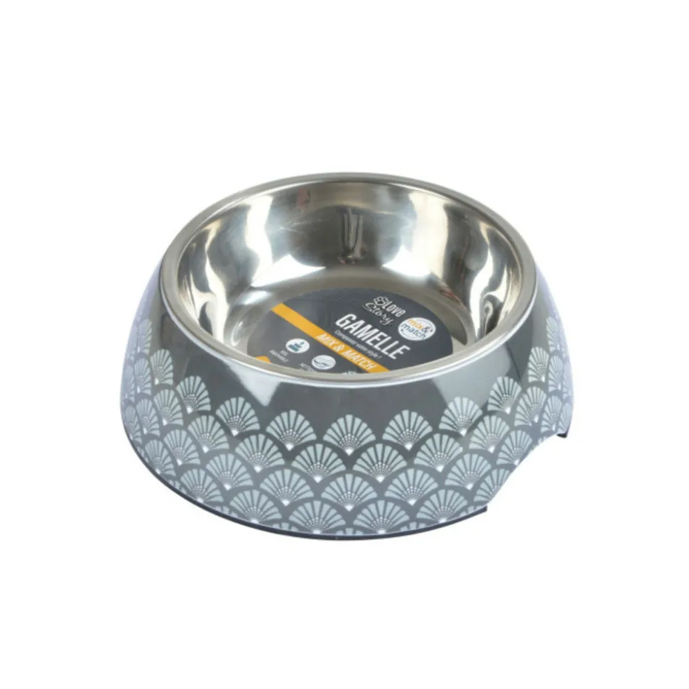 Dimensions : D. 17,6 x H. 7,3 cmMatière : InoxSpécificités :Pratique & UtileGamelleMotif impriméBol inox amovibleForme rondeCapacité : 600 mlPoids : 0,5 kgCouleur : Anthracite