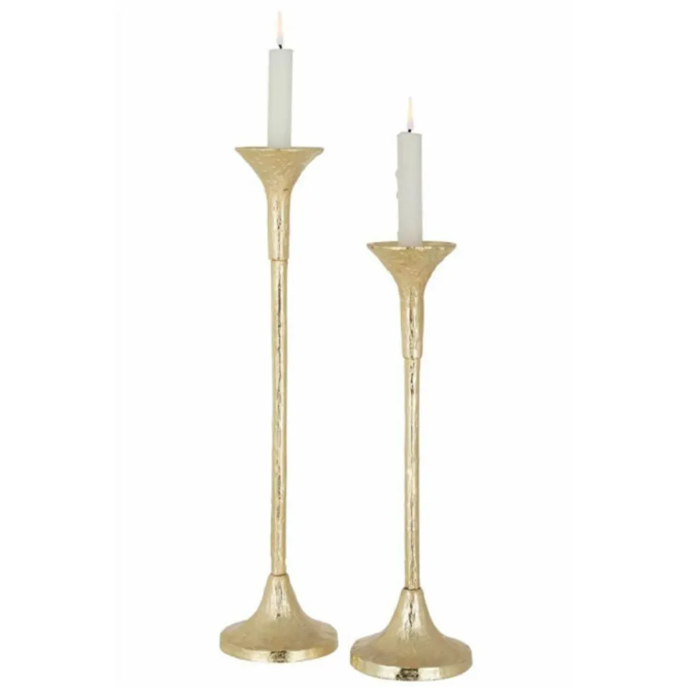 Dimensions : Taille 1 : D. 11 x H. 47 cmTaille 2 : D. 11 x H. 39 cmMatière : AluminiumSpécificités :Tendance & DécoLot de 2 ChandeliersForme RondeEffet MatPoids : 0,98 kgCouleur : Or Mat