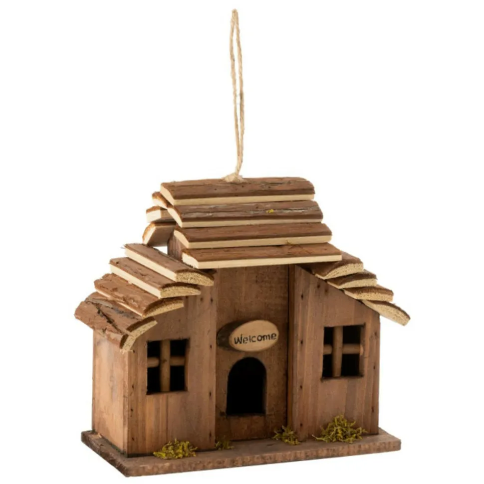 Dimensions : L. 24 x l. 12 x H. 22 cmMatières : Bois (Sapin)Spécificités :Tendance & ModerneNichoir DécoA SuspendreDesign MaisonInscription « Welcome »Poids : 0,681 kgCouleur : Marron