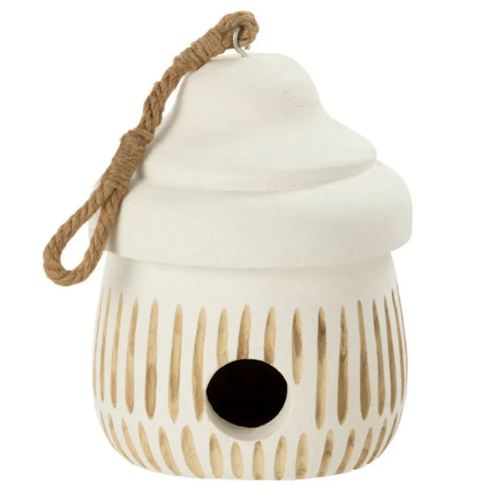 Dimensions : D. 20 x H. 27 cmMatière : BoisSpécificités :Design & UtileNichoir pour oiseauxForme rondeA suspendrePoids : 1,38 kgCouleur : Blanc & Naturel