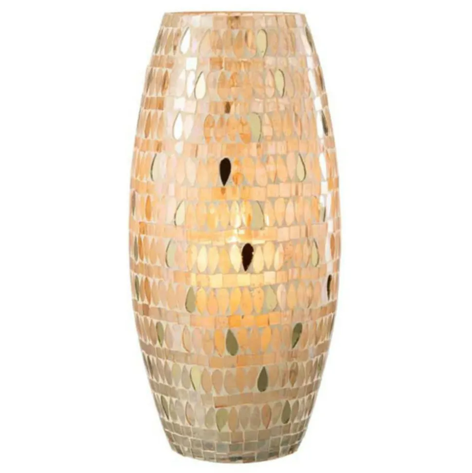 Dimensions : D. 16 x H. 35 cmMatière : VerreSpécificités : Pratique & UtilePhotophore DécoForme RondeDesign MosaïquePoids : 1,51 kgCouleur : Beige