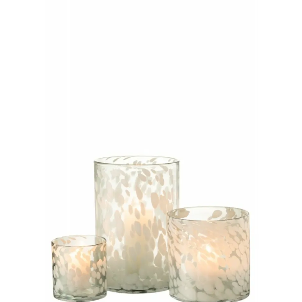 Dimensions : D. 18 x H. 18 cmMatière : VerreSpécificités :Pratique & ChicPhotophore DécoForme RondeDesign TâchesPoids : 1,8 kgCouleur : Gris & Blanc