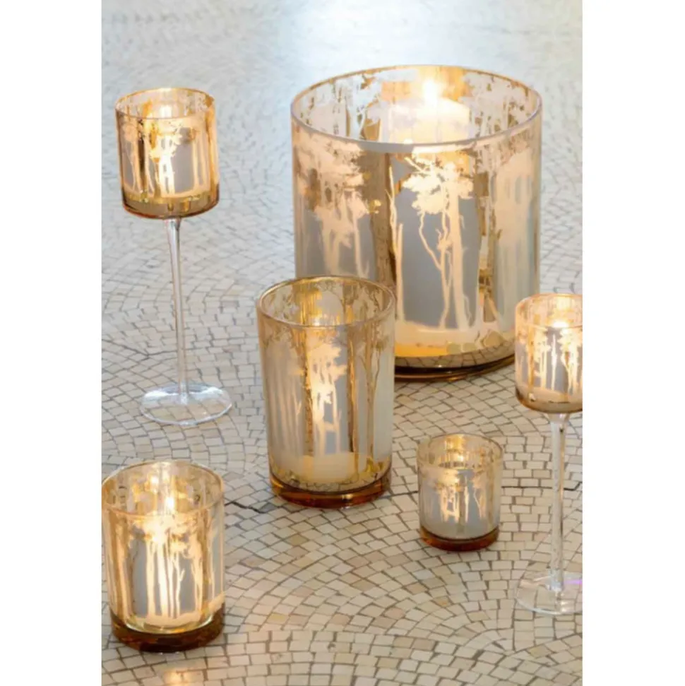 Dimensions : D. 9 x H. 30 cmMatière : VerreSpécificités :Tendance & ChicPhotophore DesignSur PiedForme RondeMotif ArbrePoids : 0,28 kgCouleur : Or
